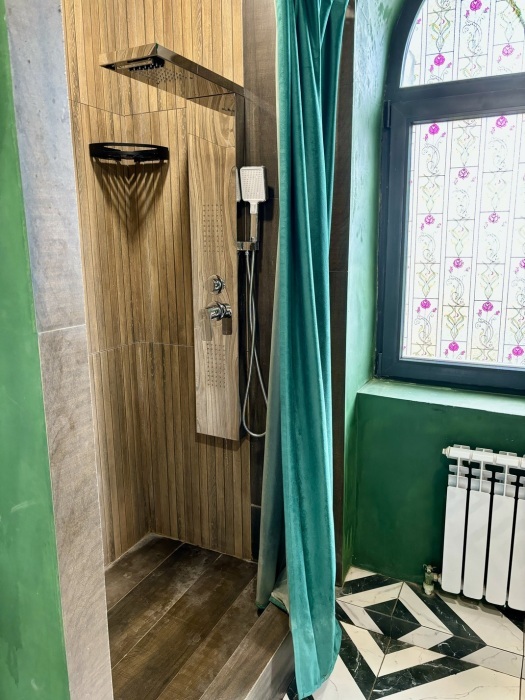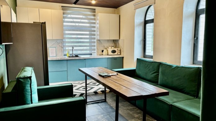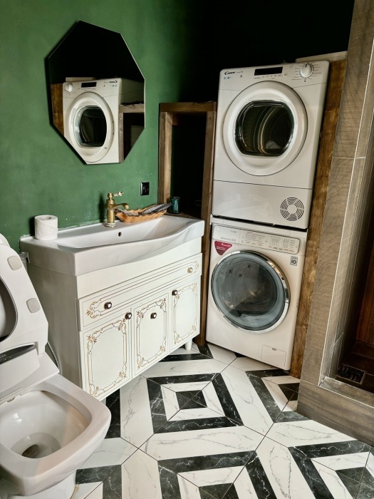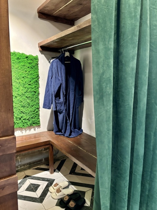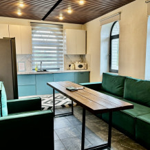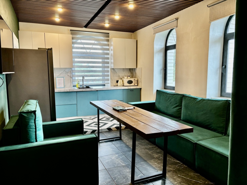 Комфортабельный лофт на территории частной усадьбы с самым современным оснащением и удобствами. Внутри спальня с подиумом, большой плазменный телевизор. А также кухня-гостиная с большим диваном и креслом, длинным столом, холодильником side-by-side, телевизором, стильным кухонным гарнитуром с каменной столешницей, посудомоечной машиной, чайником и микроволновой печью, электроплитой с духовкой. В санузле: душ, раковина с тумбой, зеркало, стиральная и сушильная машина, а также роскошный японский унитаз. В лофте две гардеробных комнаты - одна для вещей, другая для чемоданов и сумок.