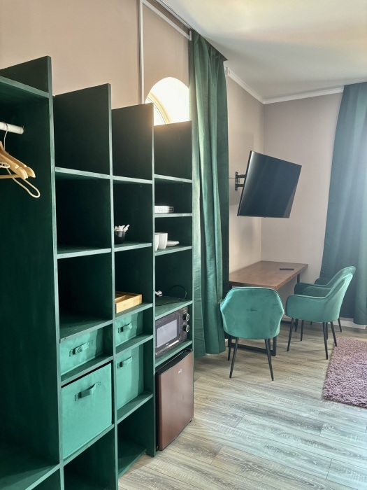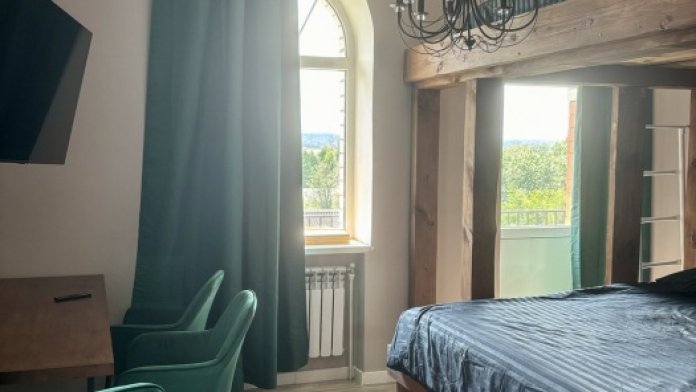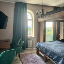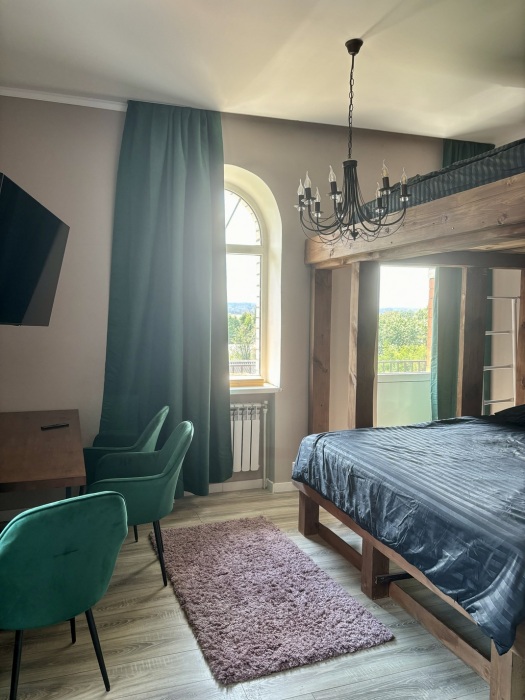 Комфортный семейный номер с двухьярусной двуспальной кроватью и большим балконом. В номере есть холодильник, микроволновая печь, чайный уголок и комфортная ванная комната с ванной и всеми необходимыми гигиеническими принадлежностями.