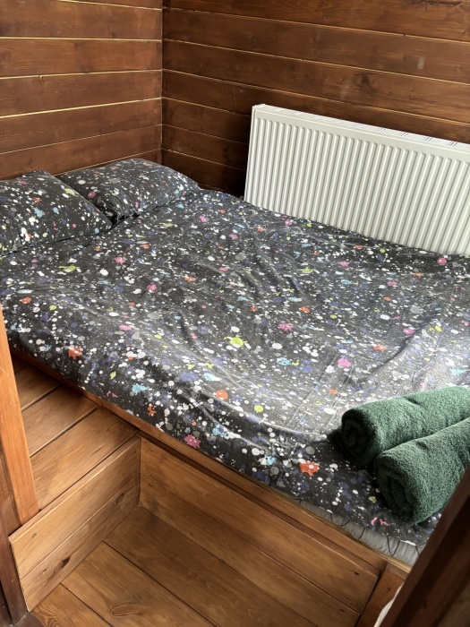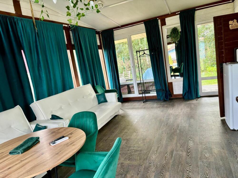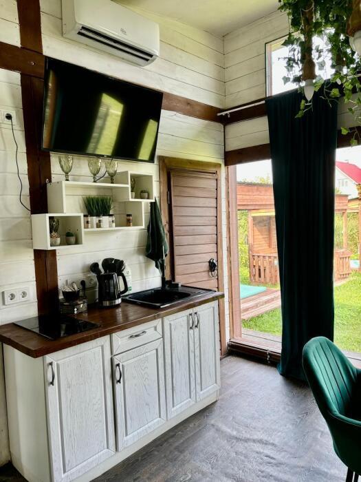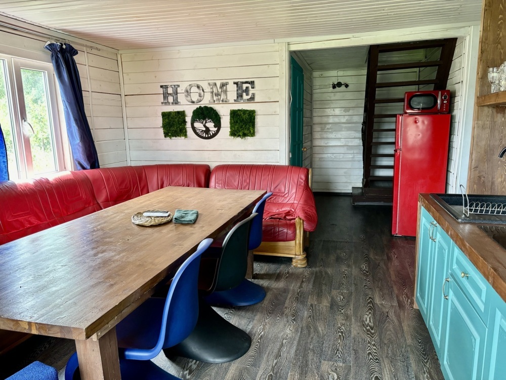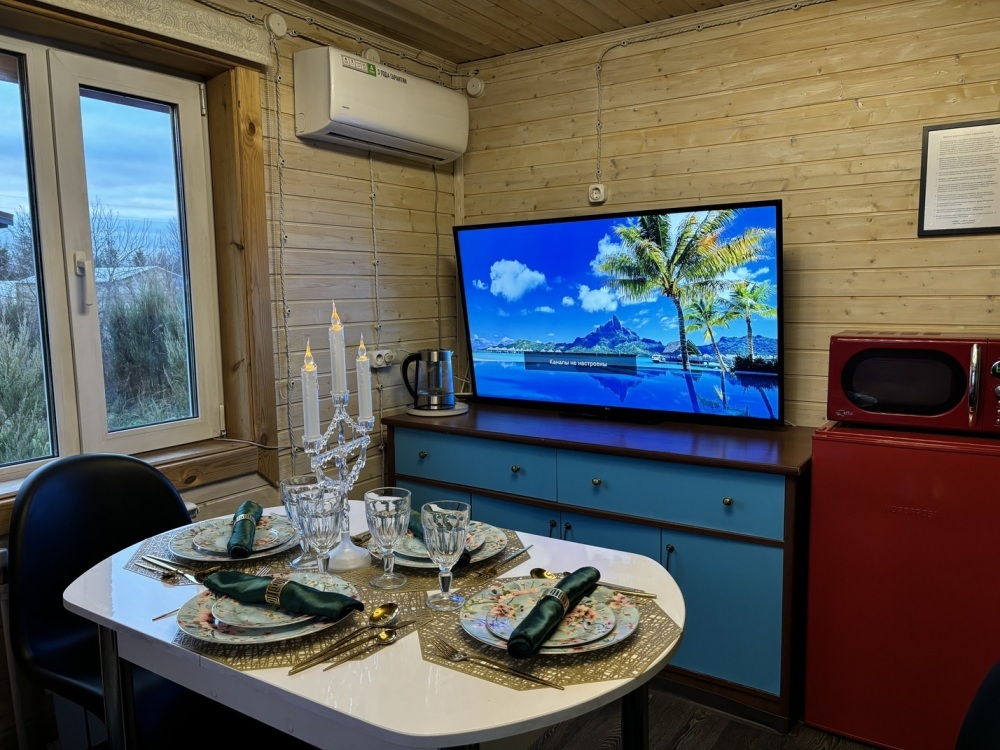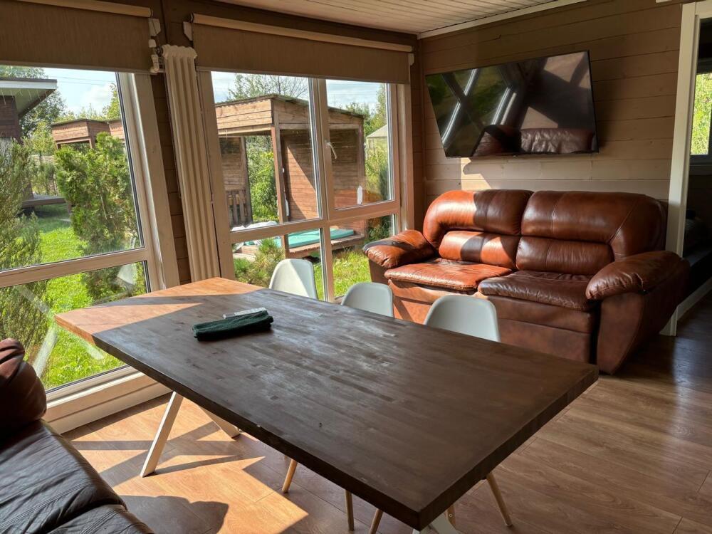 Что есть в доме: 2 уютные спальни, просторная кухня-гостиная для застолья и танцев, панорамные окна во всю стену, санузел с душевой кабиной, 8 спальных мест (2 двуспальные кровати в спальнях, 2 дивана-кровати в гостиной), холодильник, телевизор со смарт-тв, wi-fi, микроволновая печь, плита, электрочайник, чай, сахар, посуда, приборы, сковорода, кастрюля, постельное белье и полотенца, шампунь, кондиционер, гель для душа, зубной набор, мыло