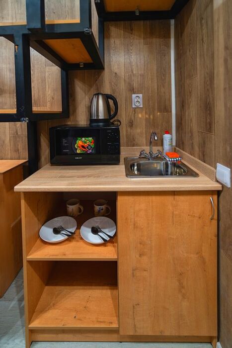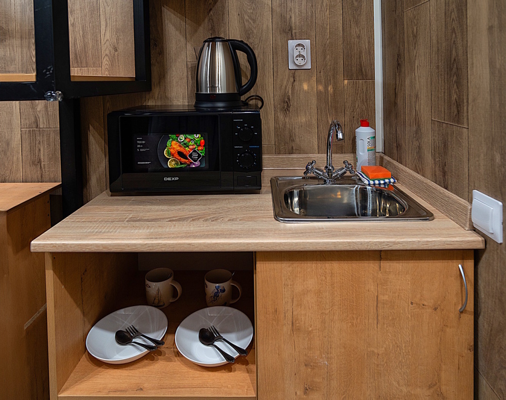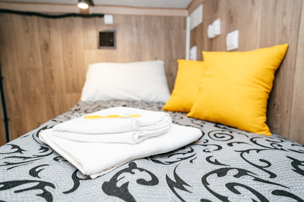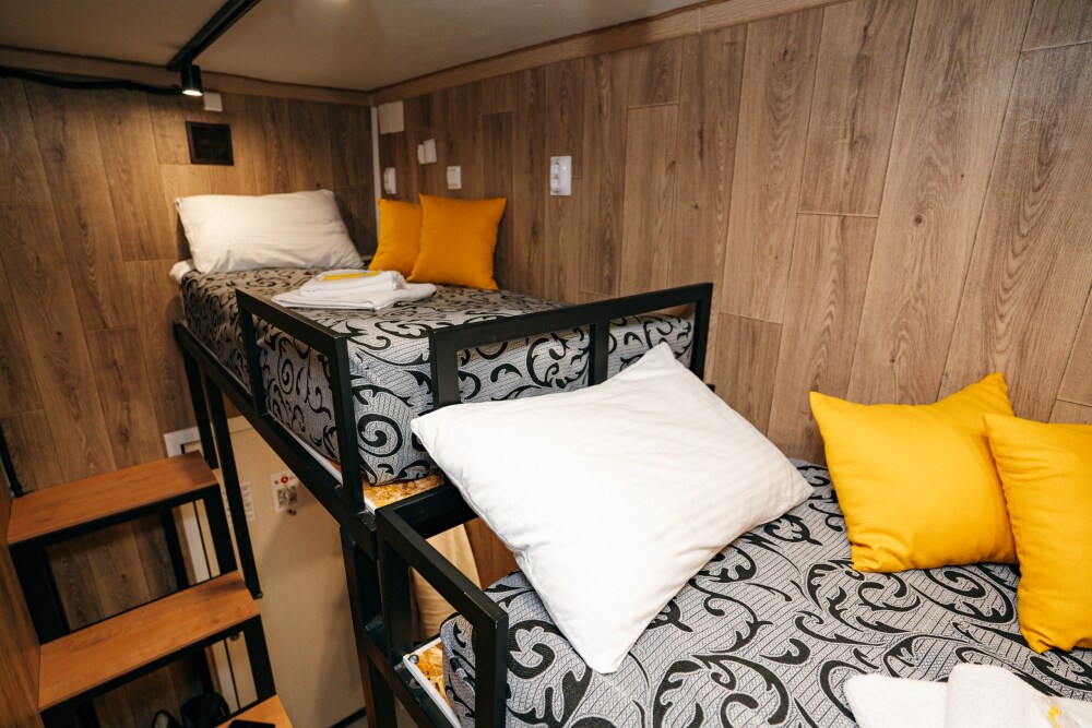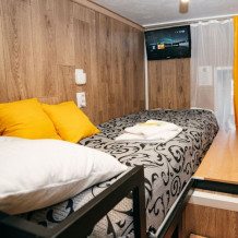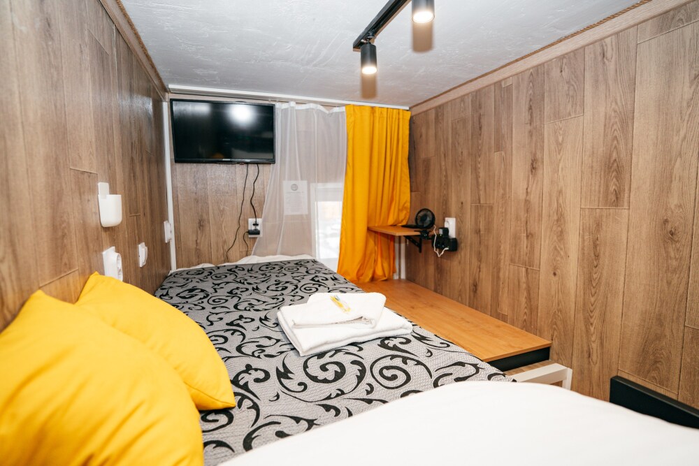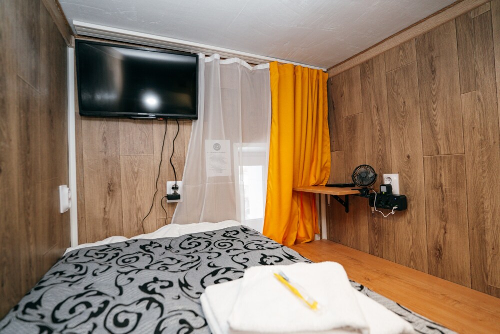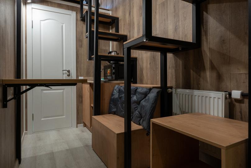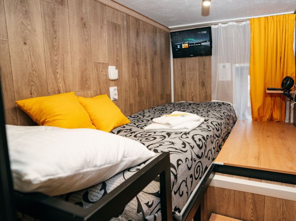 К услугам гостей 28 одноместных номеров с дополнительной одноместной кроватью. Каждый номер оснащен комфортной кроватью с ортопедическим матрасом (расположенной на втором ярусе), Каждый номер оснащён чайником, микроволновкой, посудой на две персоны, небольшой кухонной зоной с раковиной, набором полотенец и постельным бельем. Набором посуды на 2 персоны, кухонной зоной с раковиной, постельным бельем и набором полотенец. Все что необходимо для комфортного проживания.