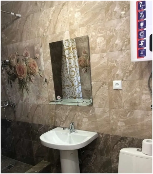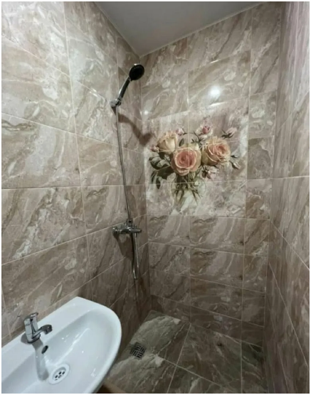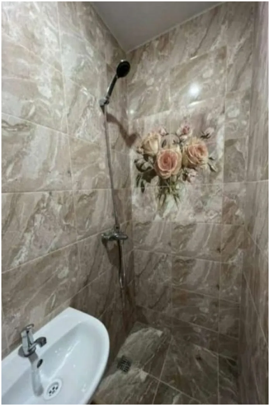 Общая ванная комната: душ, раковина, туалет.