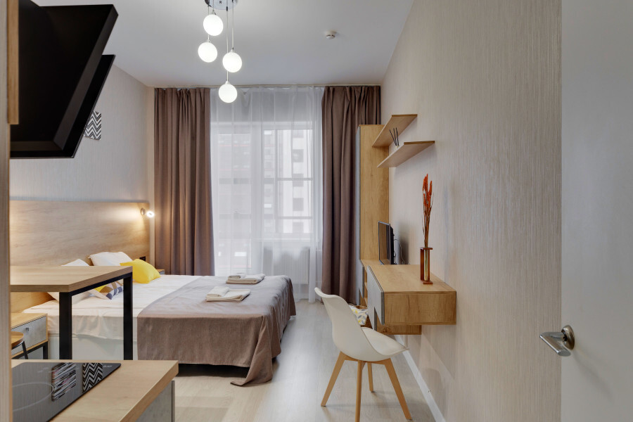 Бюджетный вариант для активного отдыха в Санкт-Петербурге. Этот отель находится в 12 км от центра города. Рядом с отелем можно прогуляться по парку «Аллея Героев», до метро 15 минут спокойным шагом, аэропорт расположен в 13 минутах езды на такси, удобные съезды на КАД и ЗСД.