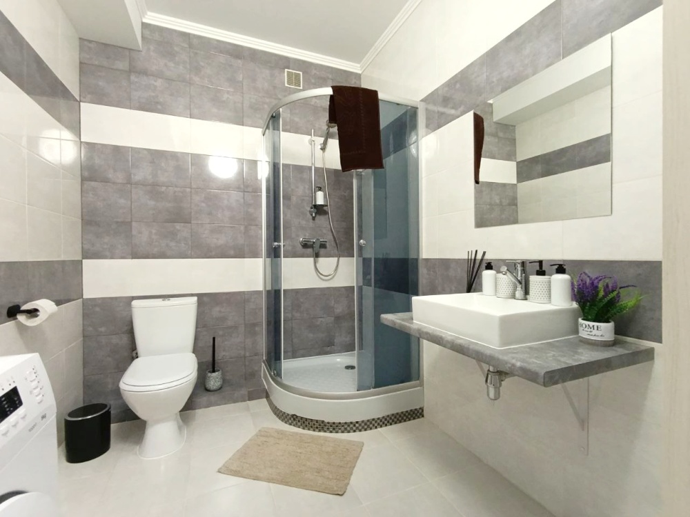 - Удобства: комфортная двуспальная кровать, диван-кровать, гардеробная, просторная кухня.