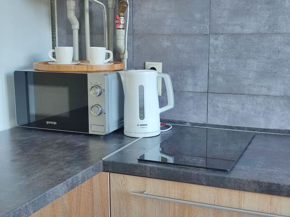 - Бытовая техника: плита, холодильник, чайник, микроволновая печь, фен, утюг, стиральная машина, пылесос.