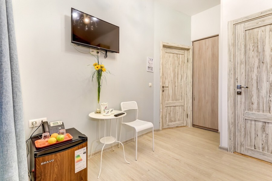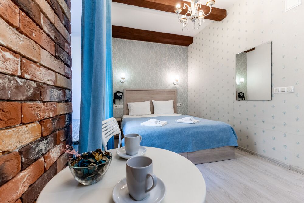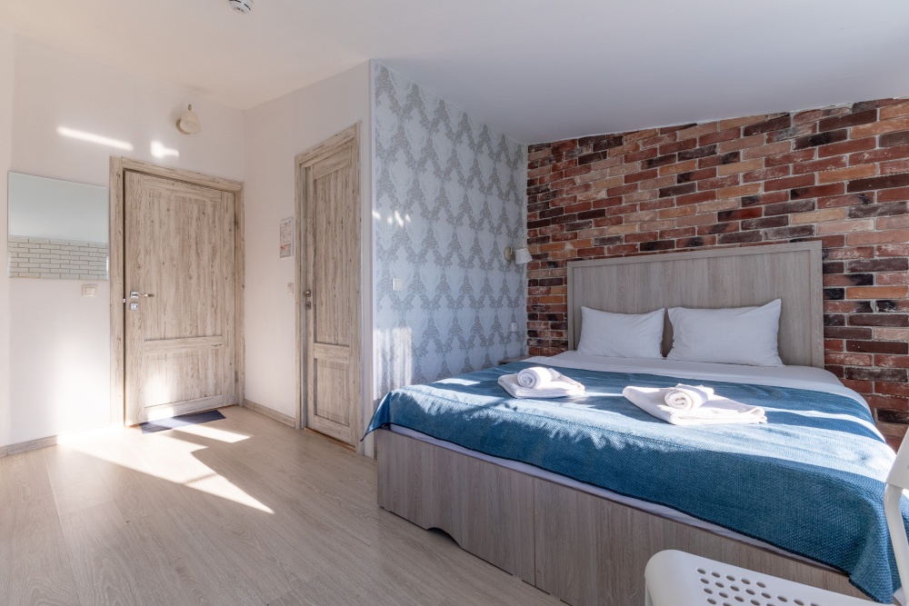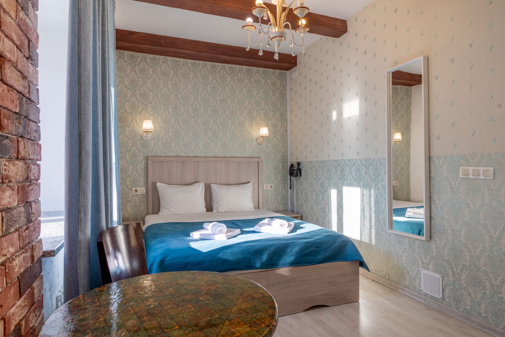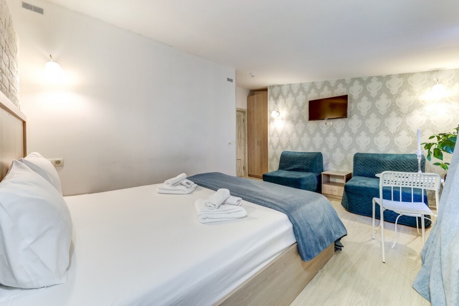 Комфортные номера в которых Вы можете с комфортом отдохнуть, а если захочется – и поработать. В номерах есть все современные удобства: ТВ, фен, холодильник, бесплатный Wi-Fi. Набор косметических средств высокого качества в ванной комнате и зеркало с подсветкой.