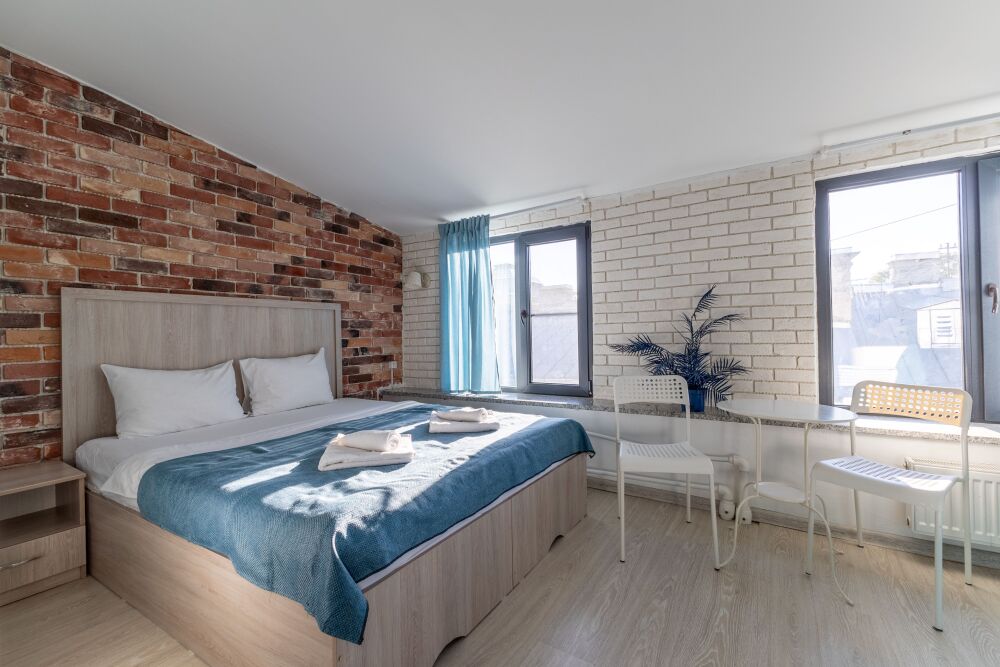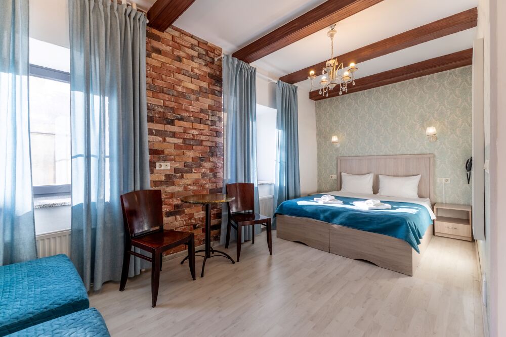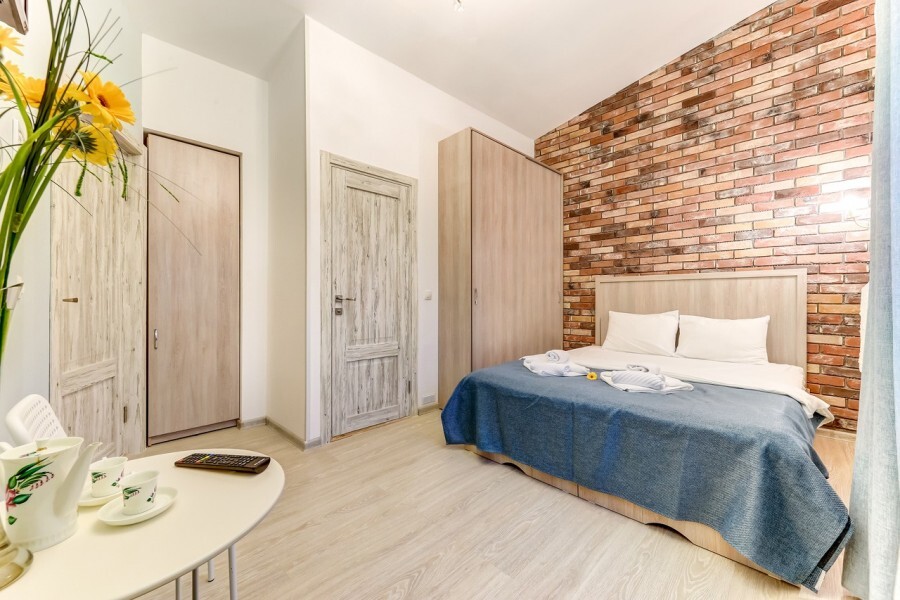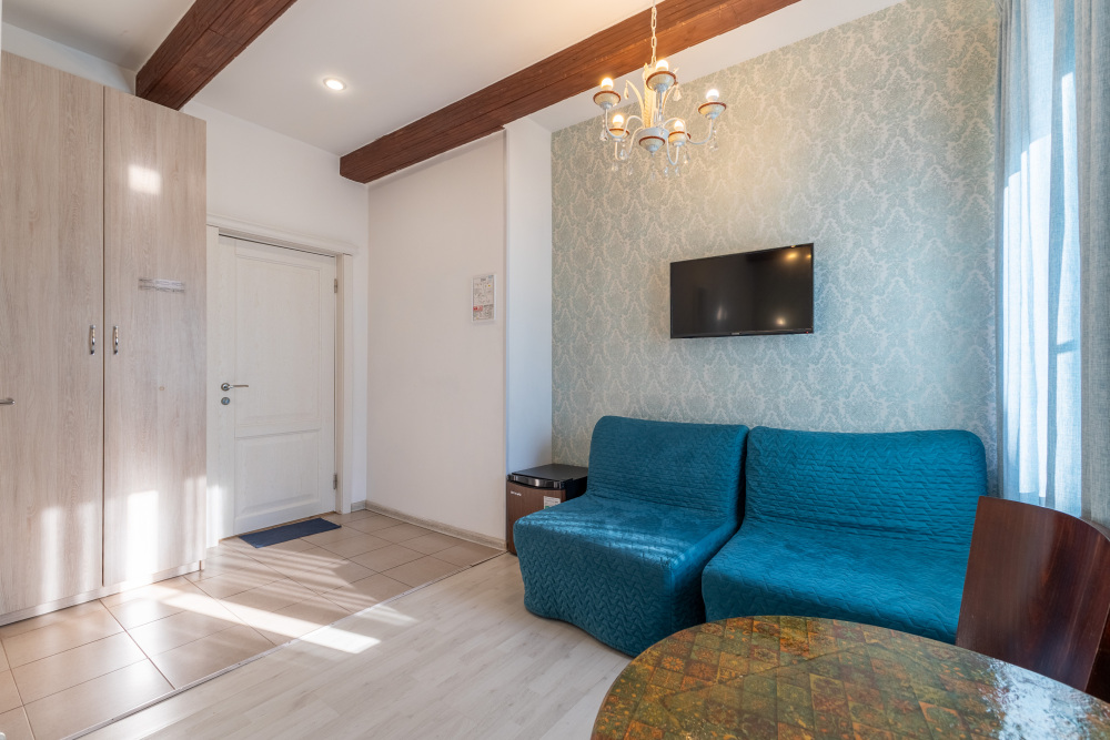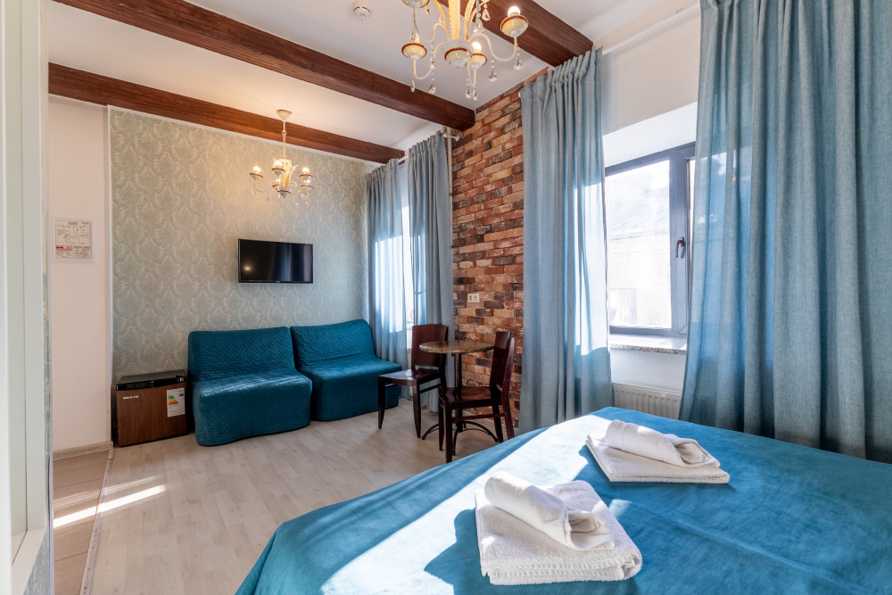 Комфортные номера в которых Вы можете с комфортом отдохнуть, а если захочется – и поработать. В номерах есть все современные удобства: ТВ, фен, холодильник, бесплатный Wi-Fi. Набор косметических средств высокого качества в ванной комнате и зеркало с подсветкой.
