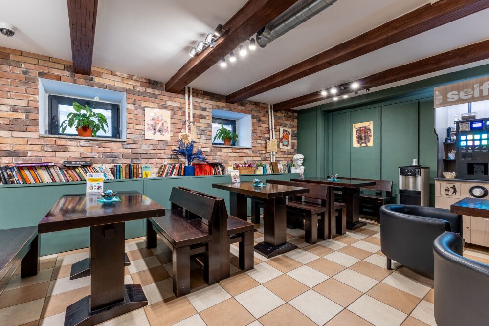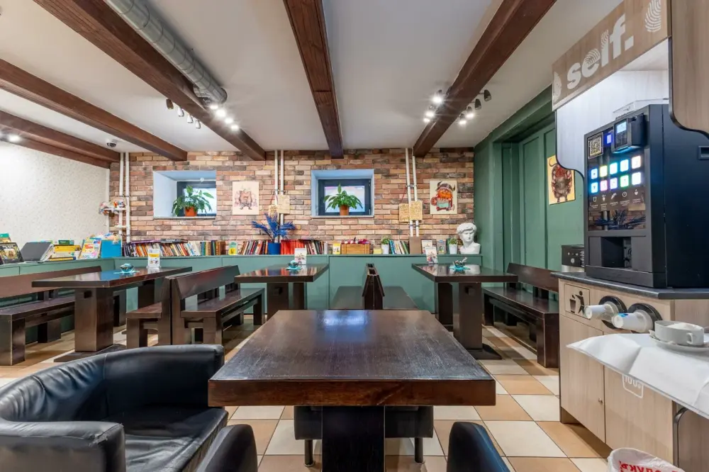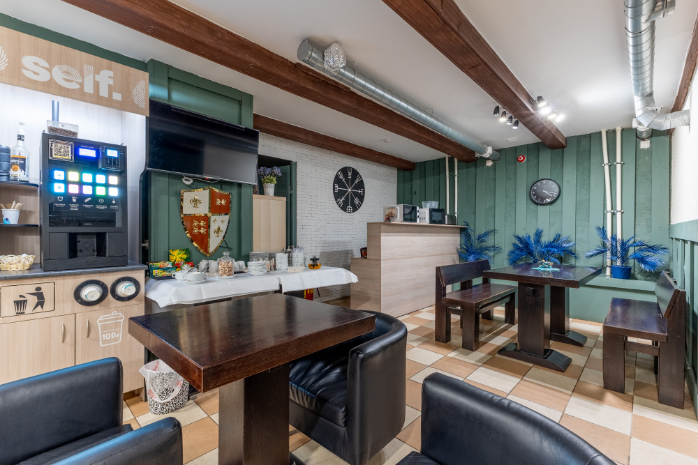 Кофейный аппарат в цокольном этаже здания