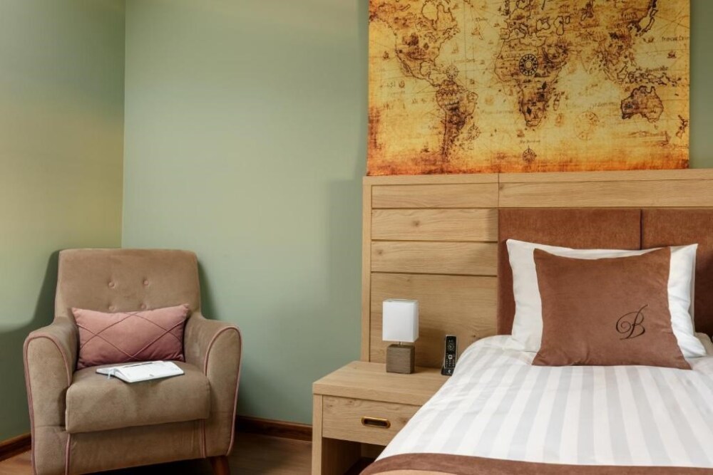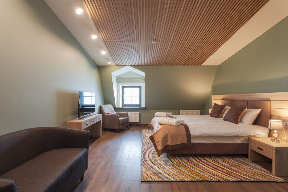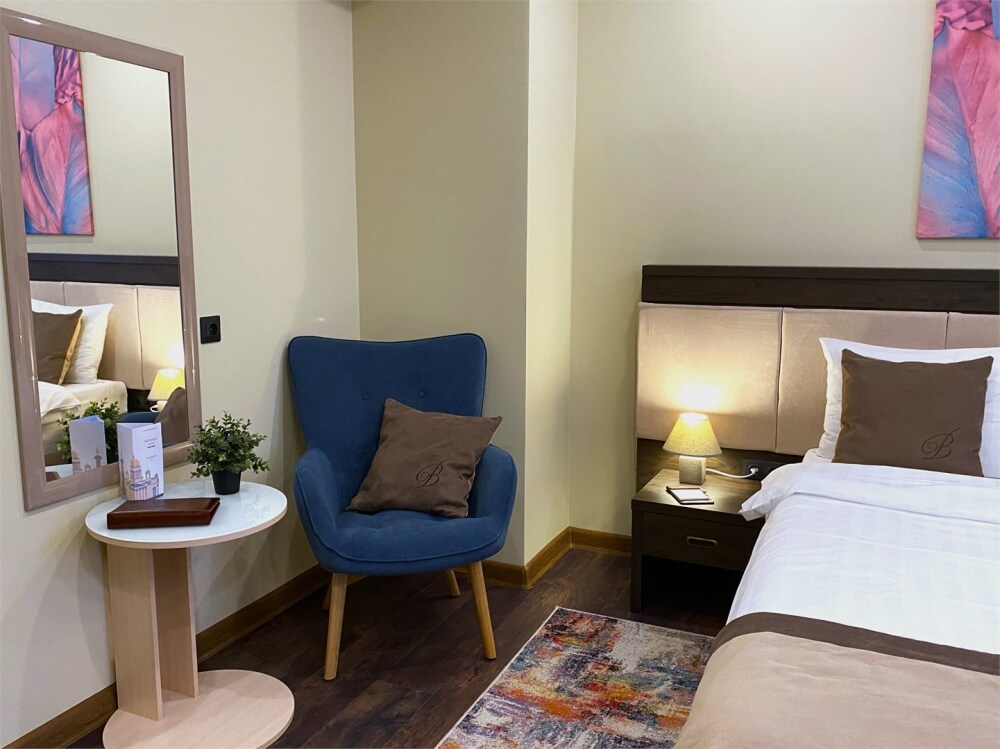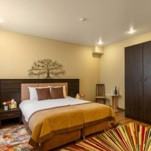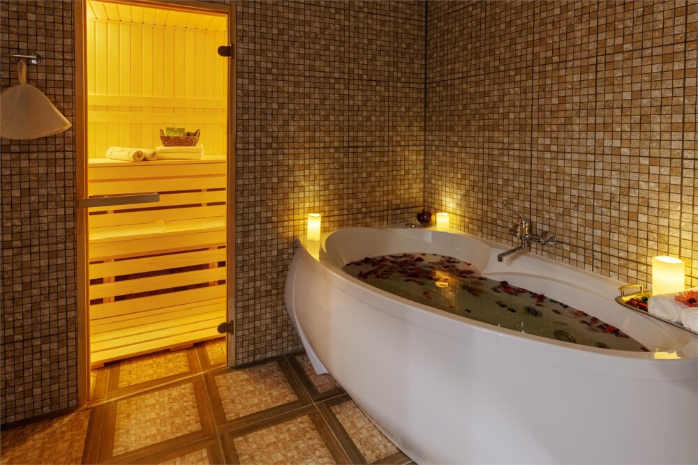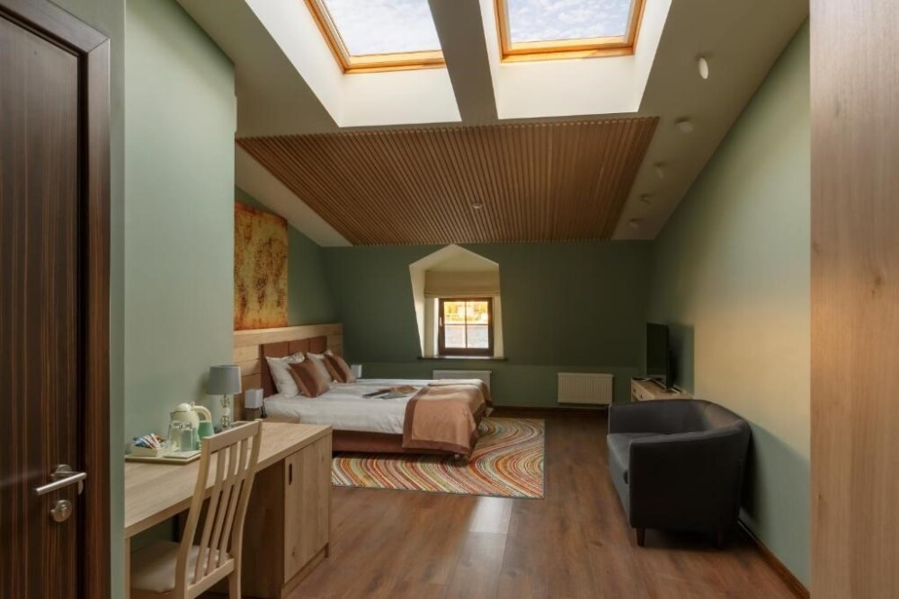 Премиальный номер с видом в тихий дворик-патио и собственной финской сауной - отличный вариант для спокойного отдыха вдали от городского шума. Для комфорта гостей в номере установлено массажное кресло. Мини-бар с алкогольными и безалкогольными напитками предоставляется комплиментарно при заезде.