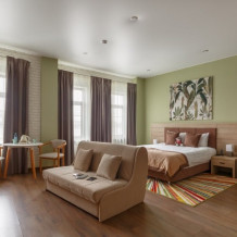Функциональный номер, оснащенный всем необходимым для работы и для комфортного отдыха. Оформлен в спокойной и приятной цветовой гамме с яркими акцентами.