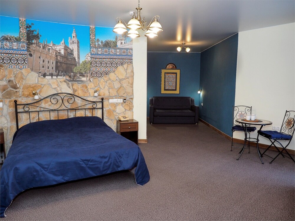 К услугам гостей 26 уютных комнат различных категорий с дизайнерским ремонтом. В каждом номере есть место для хранения одежды, телевизор с плоским экраном, мини-холодильник, собственная ванная комната с душем или ванной.