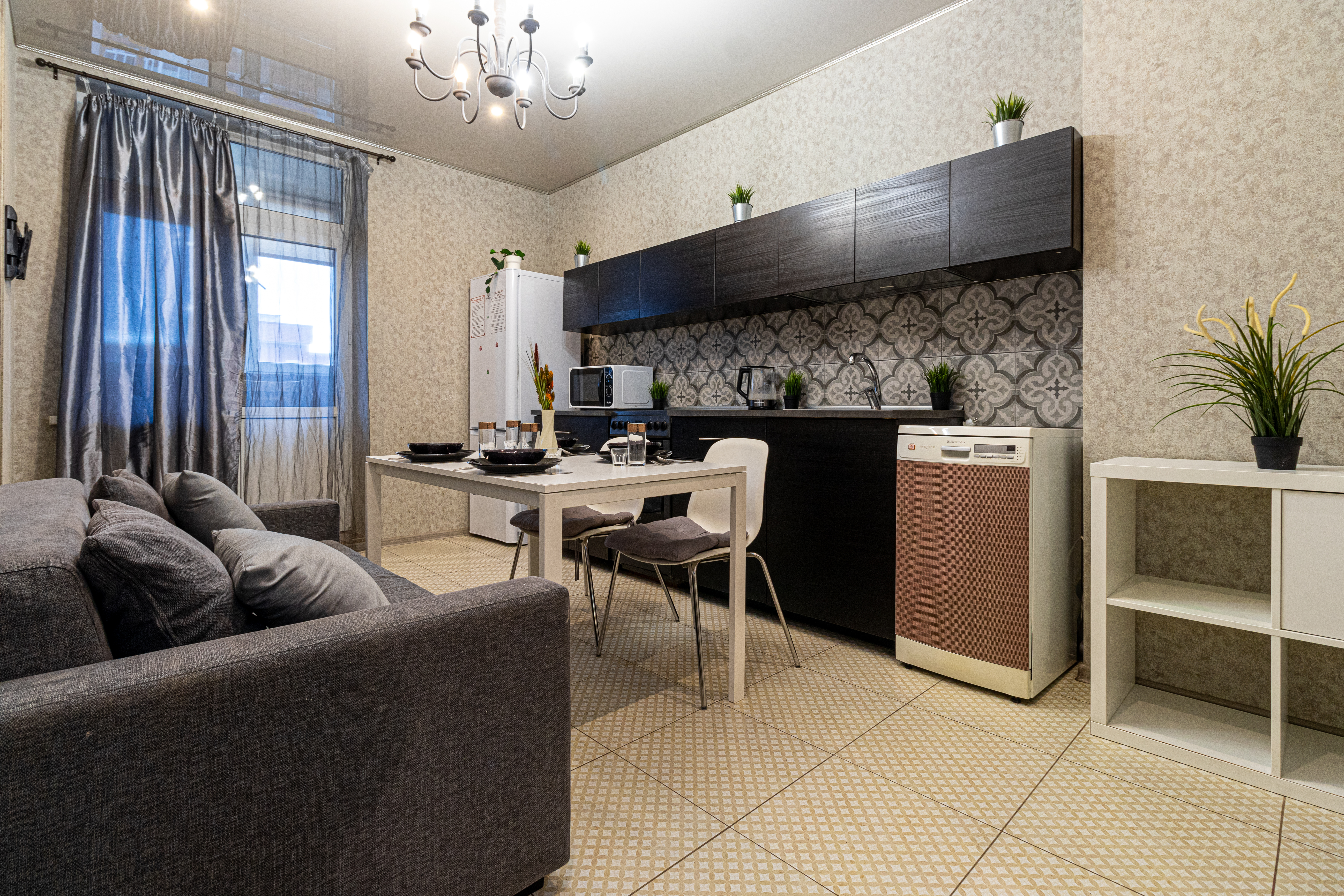 Рады приветствовать Вас! У нас в апартаментах есть все необходимое для комфортного проживания: бесплатный Wi-Fi, кондиционер, свежее постельное белье и полотенца, телевизор, ванная комната, душ, туалет, гигиена (туалетная бумага, жидкое мыло), стиральная машина, холодильник, оборудованная кухня и посуда.