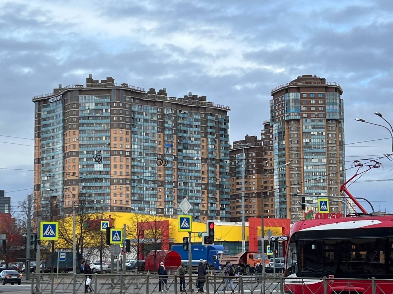 От метро «Гражданский проспект» ходят автобусы в торговый комплекс «Мега Парнас».