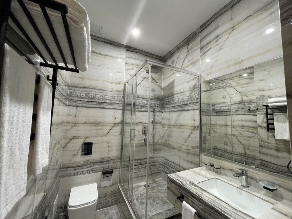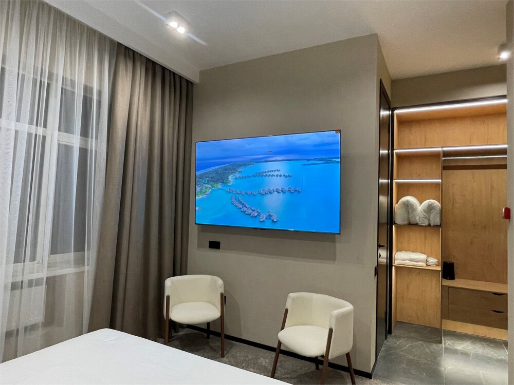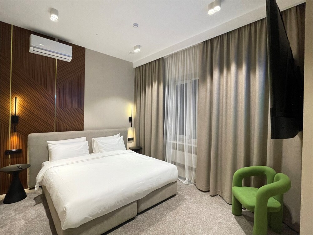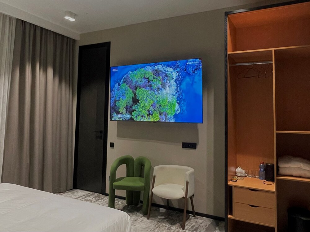 В номерах отеля имеются тихие, мощные кондиционеры, ортопедические матрацы 1000 пружин на спальное место, ортопедические топперы, ортопедические подушки «Memory Foam» с охлаждающим гелем, мощный фен, современная встроенная сантехника, гигиенические теплые души, полотенцесушители, чайник, бесплатный скоростной Wi-Fi, толстый коврик в ванной, махровые халаты и тапочки, плотные хрустящие гладкие простыни 450 линий.