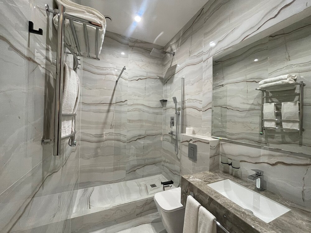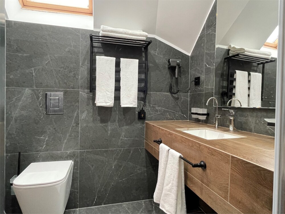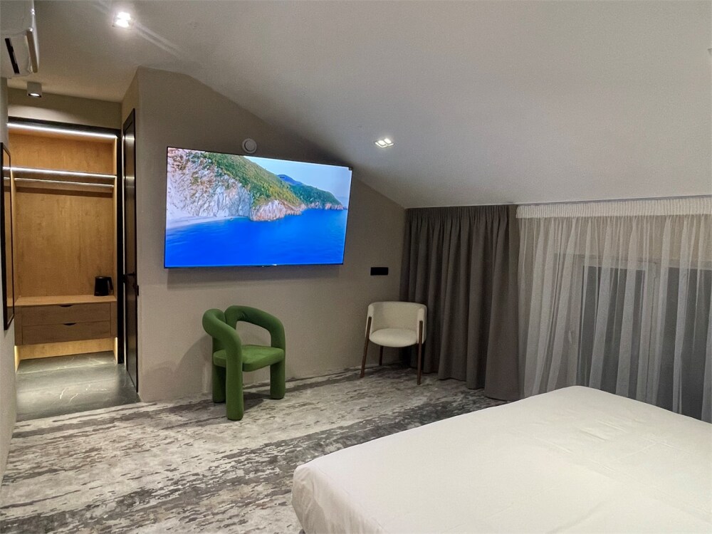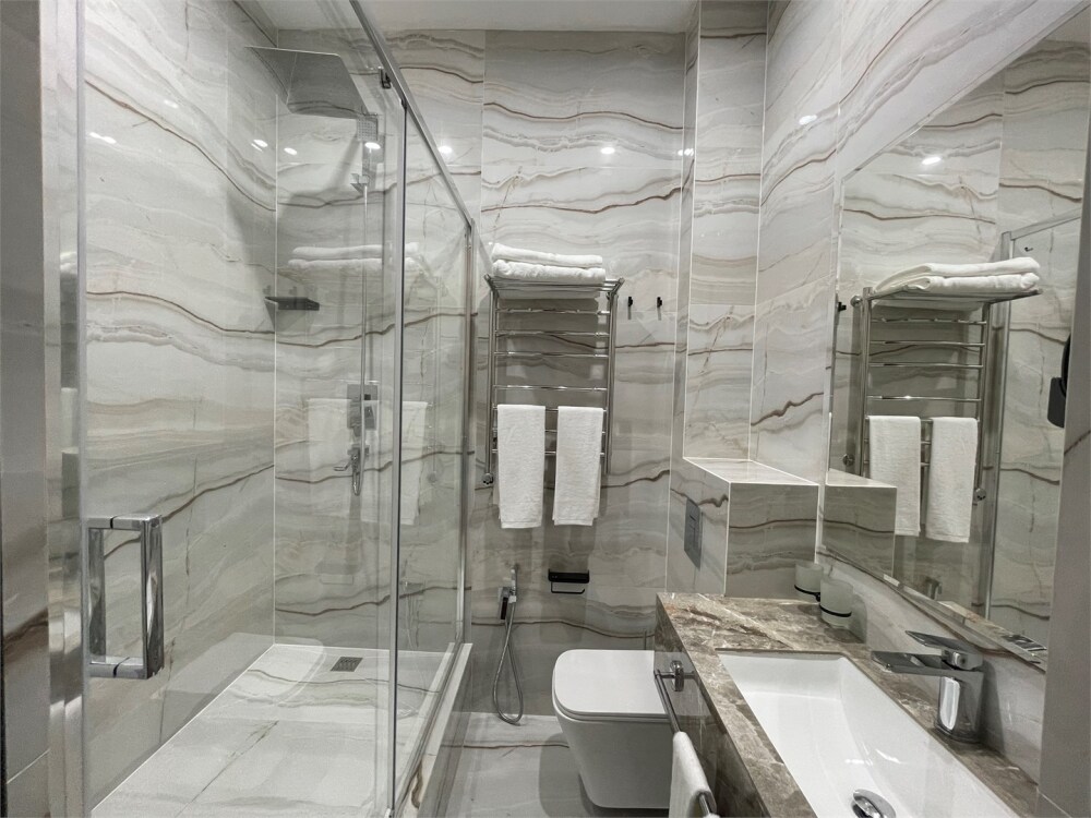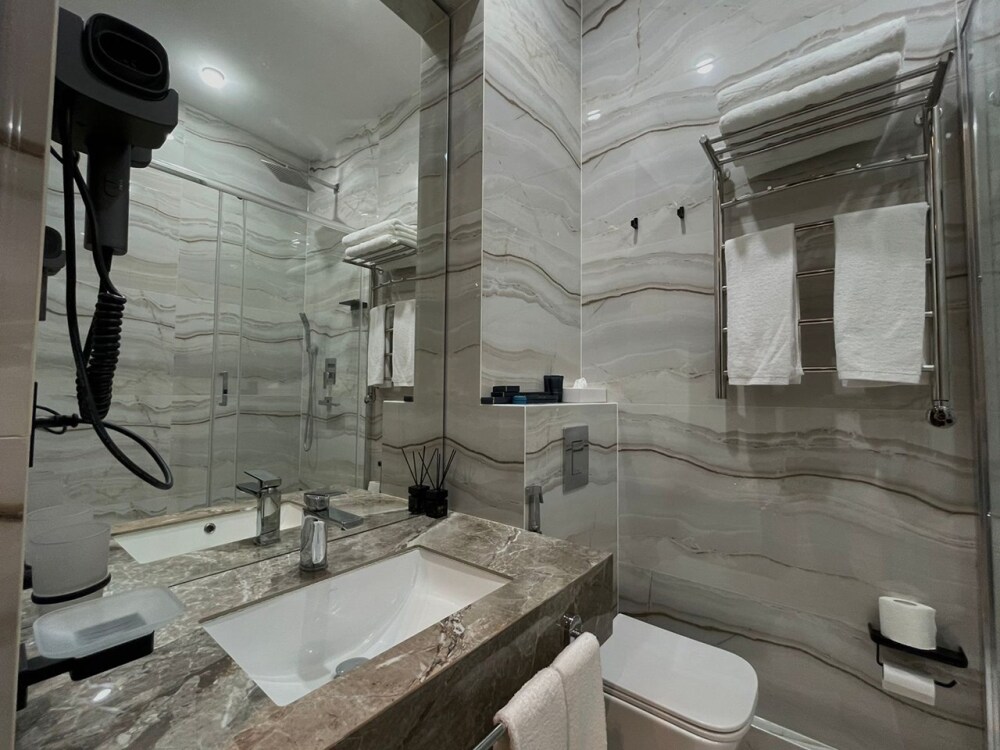 В номерах отеля имеются тихие, мощные кондиционеры, ортопедические матрацы 1000 пружин на спальное место, ортопедические топперы, ортопедические подушки «Memory Foam» с охлаждающим гелем, мощный фен, современная встроенная сантехника, гигиенические теплые души, полотенцесушители, чайник, бесплатный скоростной Wi-Fi, толстый коврик в ванной, махровые халаты и тапочки, плотные хрустящие гладкие простыни 450 линий.