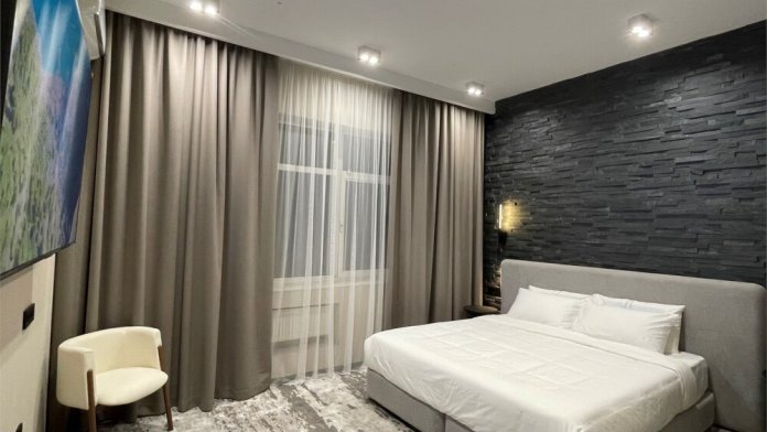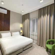 Номер категории «Стандарт» - однокомнатный номер, оформлен в современном стиле, интерьер выполнен в светлых тонах со всем необходимым оборудованием для комфортного пребывания гостей. В номере двуспальная кровать, которая при необходимости трансформируется в 2 односпальные, телевизор, кондиционер, фен, шкаф для одежды, чайный набор, санузел, электронный замок.
