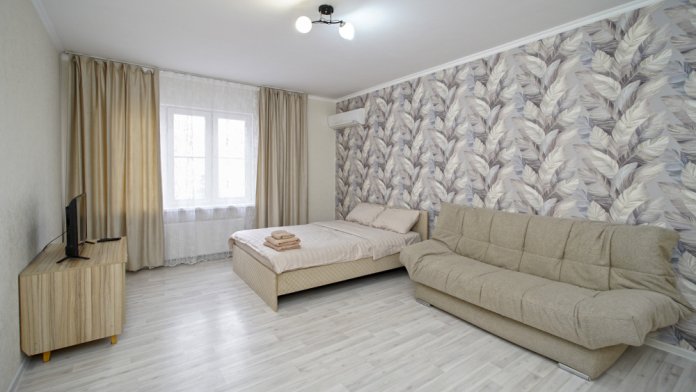 Удобства: бытовая техника, кровать, диван, плита, вся посуда, утюг, гладильная доска, стиральная машина, фен, высокоскоростной интернет wi-fi, спутниковое ТВ, кондиционер, кухня, большая кровать с ортопедическим матрасом, микроволновая печь, холодильник.