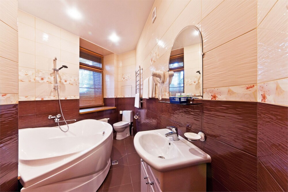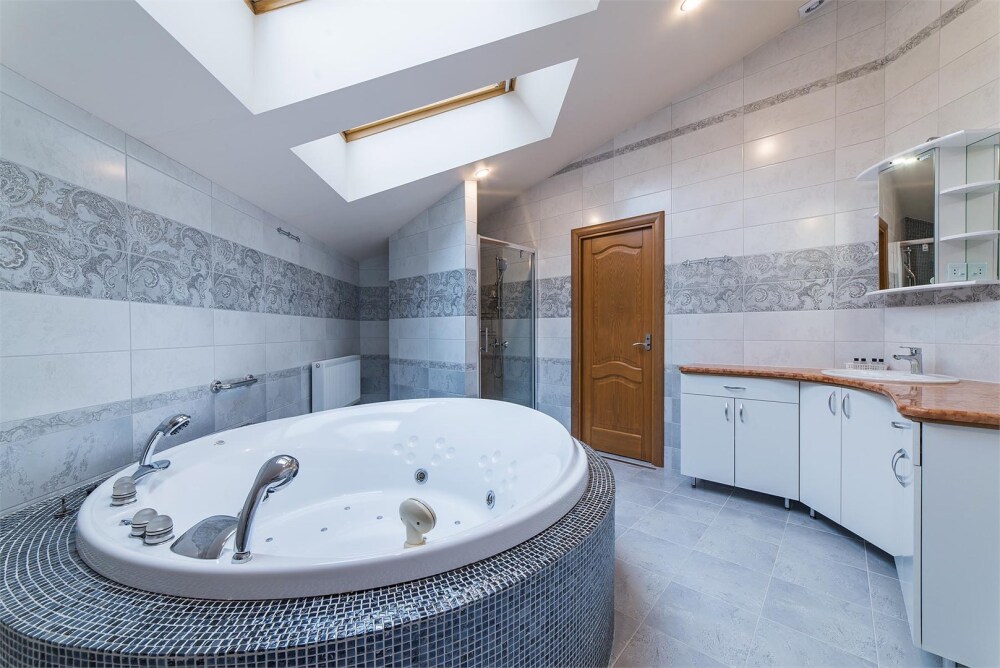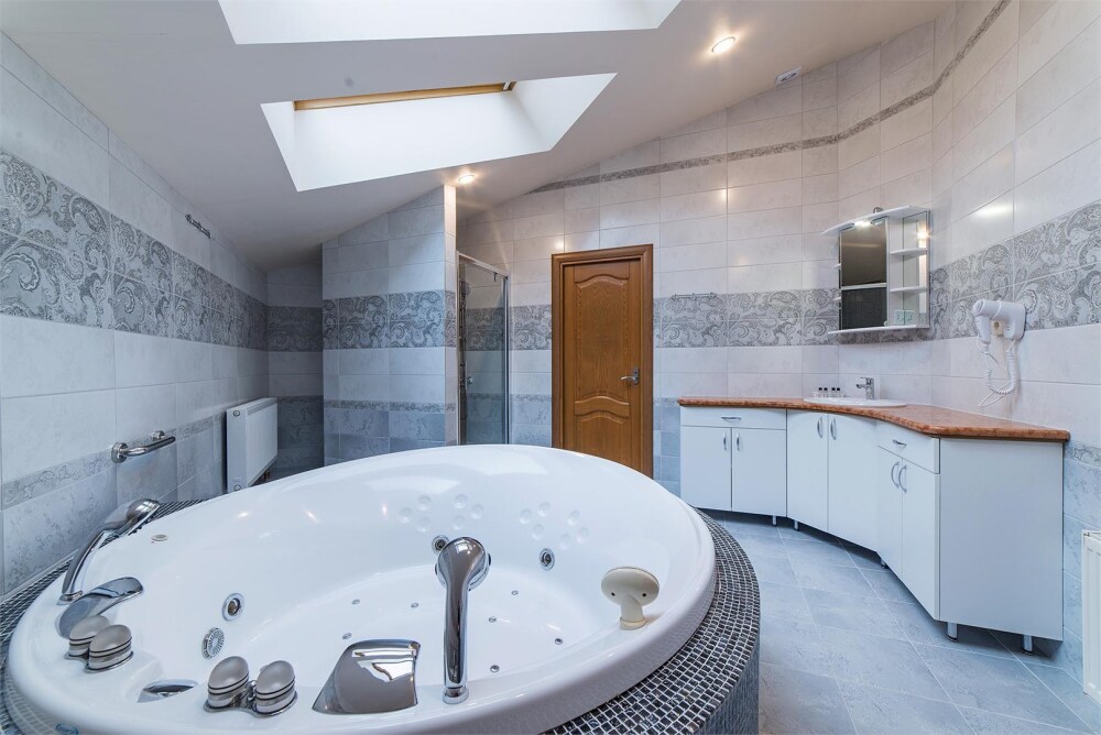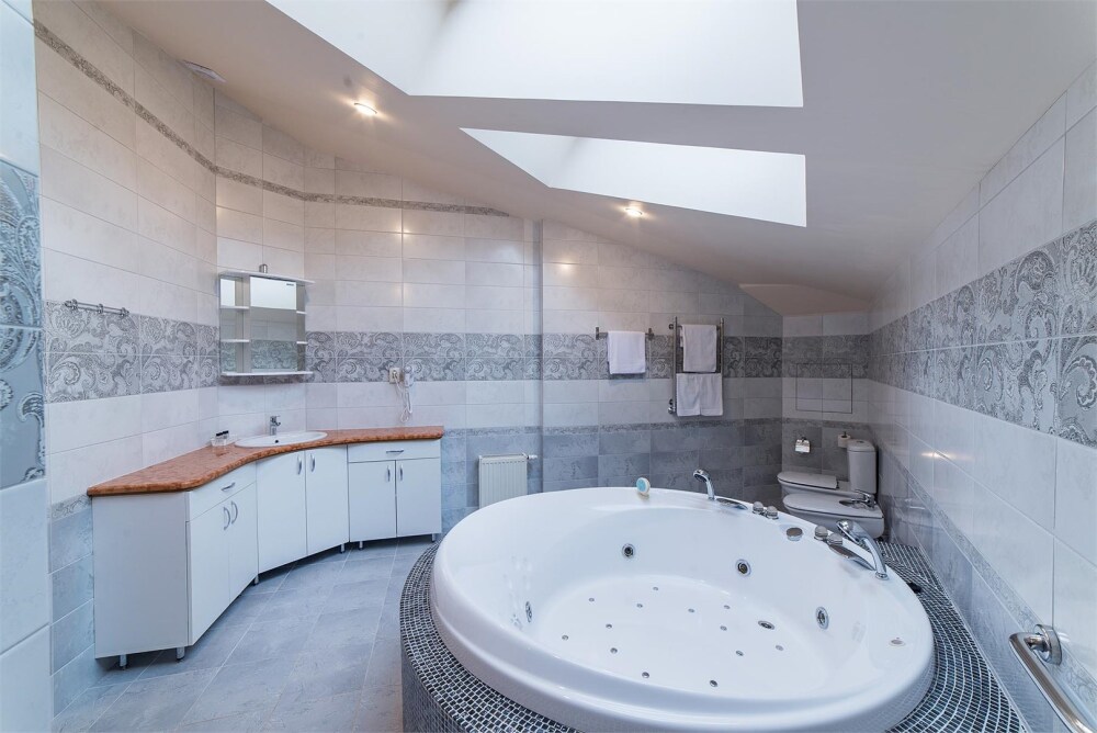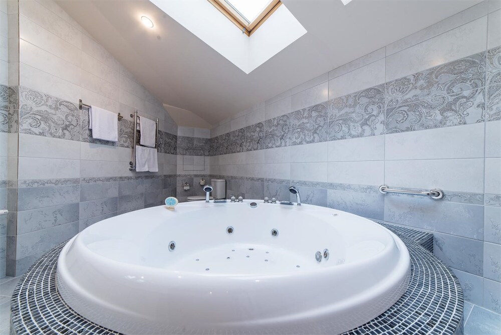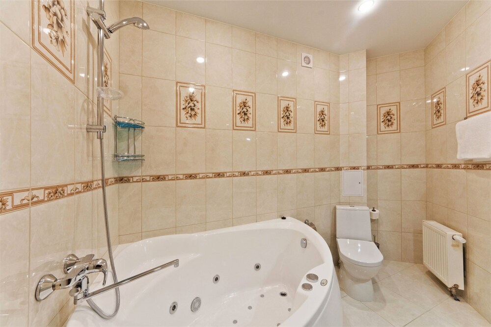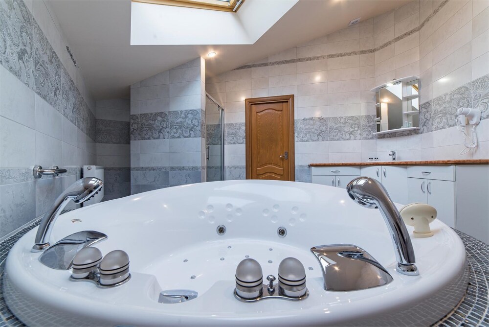 Санузел оснащён угловой ванной с функцией «Джакузи».