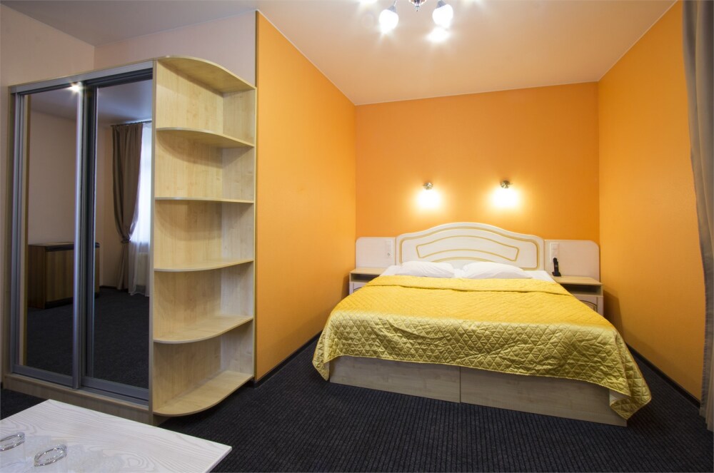 Уютный однокомнатный номер выполнен в тёплых тонах,