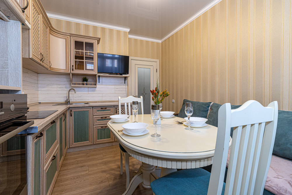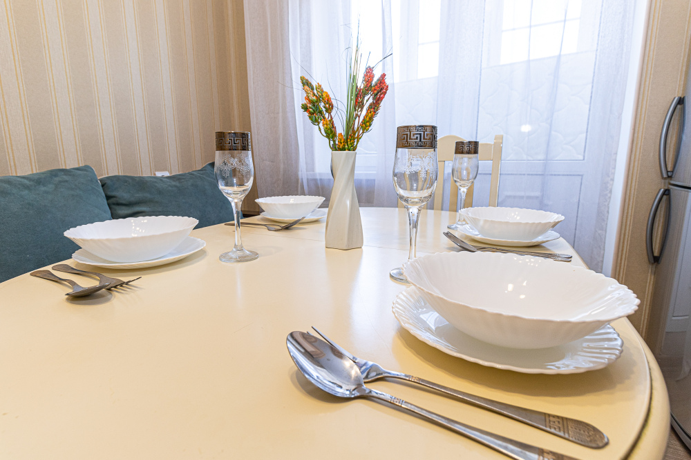 Рады приветствовать Вас! У нас в апартаментах есть все необходимое для комфортного проживания: бесплатный Wi-Fi, кондиционер, свежее постельное белье и полотенца, телевизор, ванная комната, душ, туалет, гигиена (туалетная бумага, жидкое мыло), стиральная машина, холодильник, оборудованная кухня и посуда.