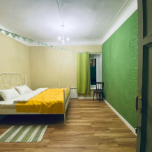 Предлагаем Вам остановиться в самом сердце старой части Петербурга, в уютной, только что отреставрированной коммунальной квартире. Общая площадь 90 квадратов, 5 отдельных комнат, закрывающихся на ключ. Каждая комната рассчитана на размещение 1-2 гостей. Третий этаж, без лифта, окна выходят в классический петербургский двор-колодец. В квартире сохранились старые дымоходы, старинные дубовые двери были так же сохранены и отреставрированы. Так же по всей квартире проведена ретро-проводка.