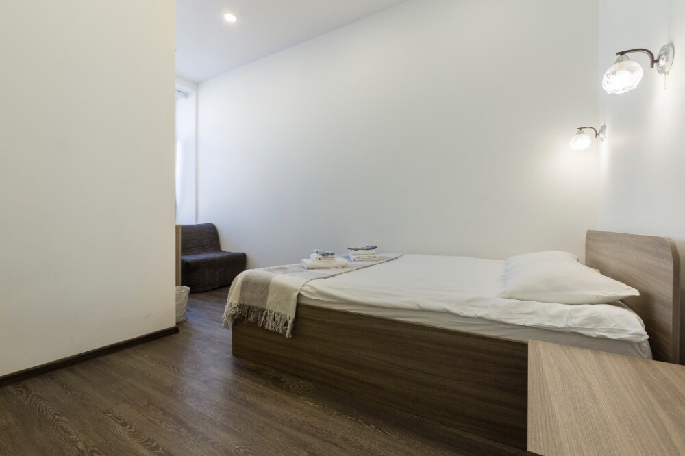 Гостевой дом располагает девятью уютными номерами (один из которых — Люкс), тремя санузлами и хорошо оснащенной кухней, где Вы в любой момент сможете отведать свежезаваренный кофе. Наш гостевой дом - не хостел. У нас нет двухъярусных кроватей и многонаселённых номеров! Мы предоставляем нашим гостям удобные двухместные или семейные трёхместные номера по разумным ценам, а наши внимательные администраторы всегда готовы ответить на любые Ваши вопросы и помочь проложить Вам маршрут от гостевого дома к примечательным местам Северной столицы.