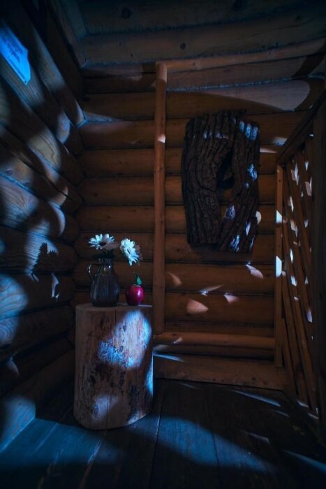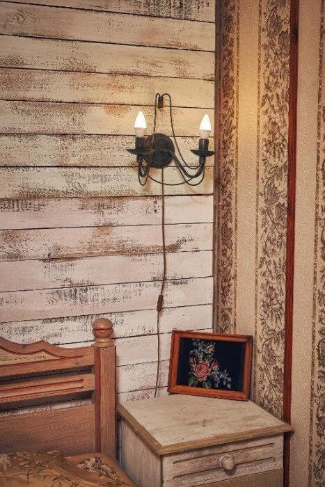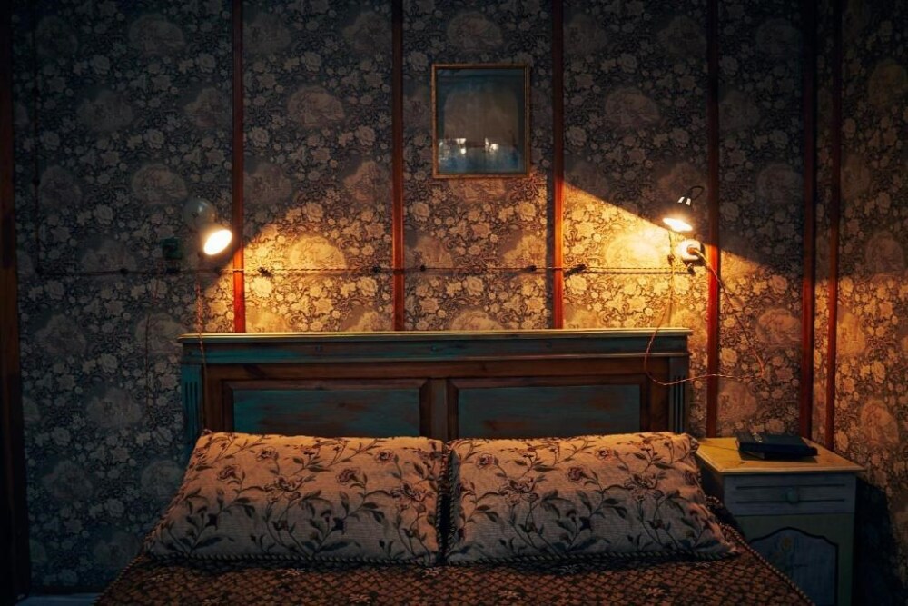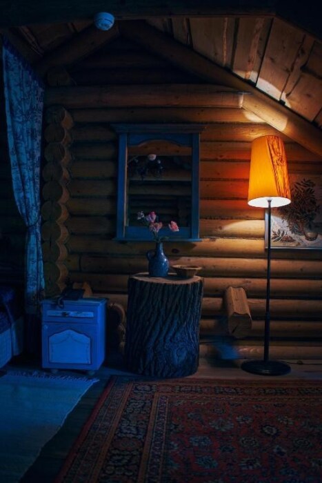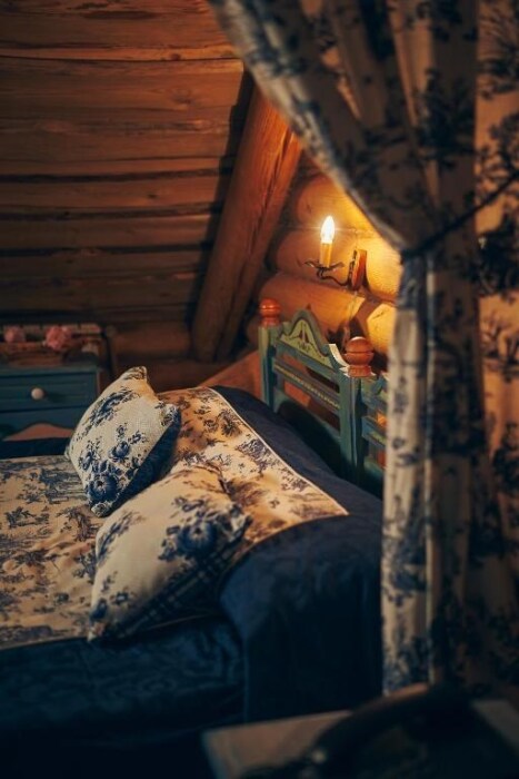 Однокомнатный номер с индивидуальным дизайном в стиле лофт и мебелью ручной работы в деревянном доме в стиле времен А.П.Чехова. В номере - двуспальная кровать, две тумбочки, два стула, холодильник, телевизор, электрочайник, фен, тапочки, халаты. Ванная комната с ванной и туалетом.