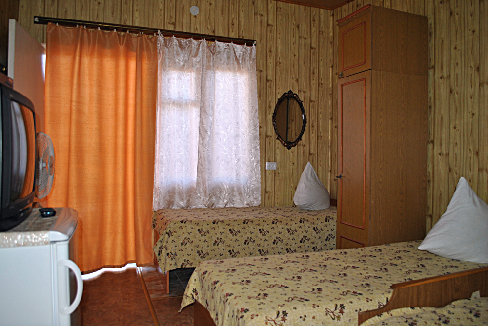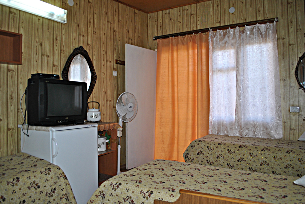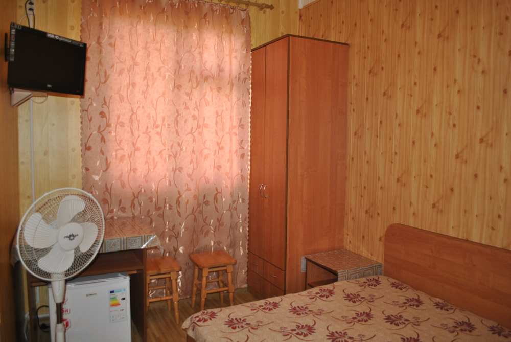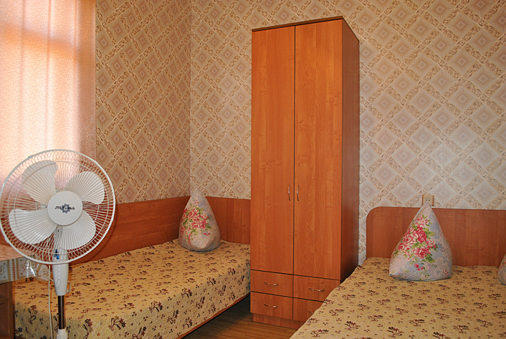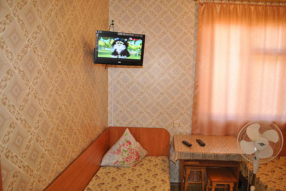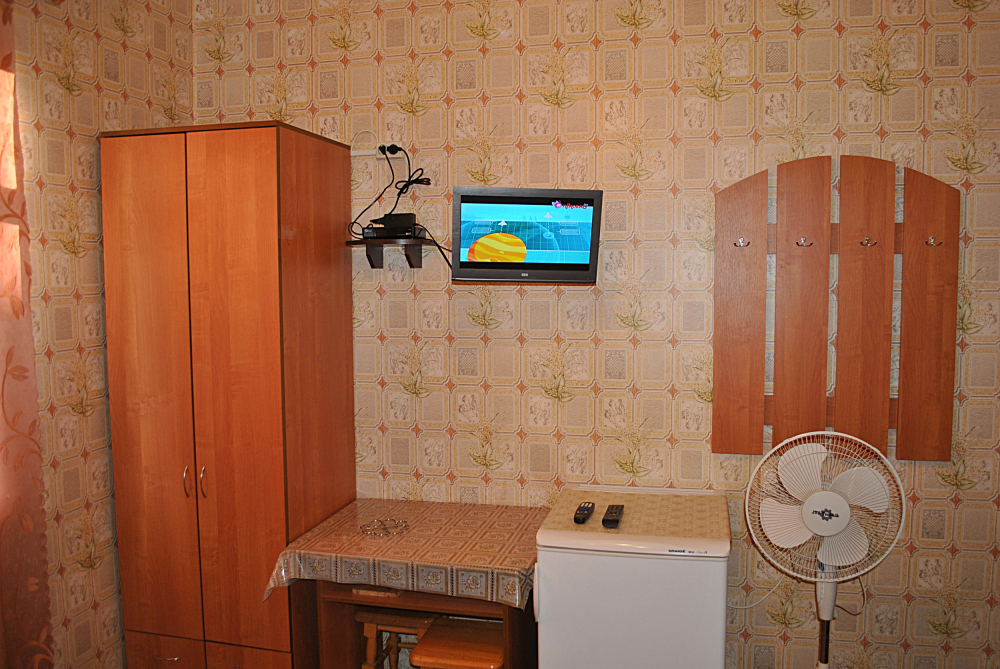 Комната находится на 1-м этаже В комнате есть холодильник, вентилятор, телевизор со спутниковыми каналами, шкаф, три односпальных кровати. Вид во двор