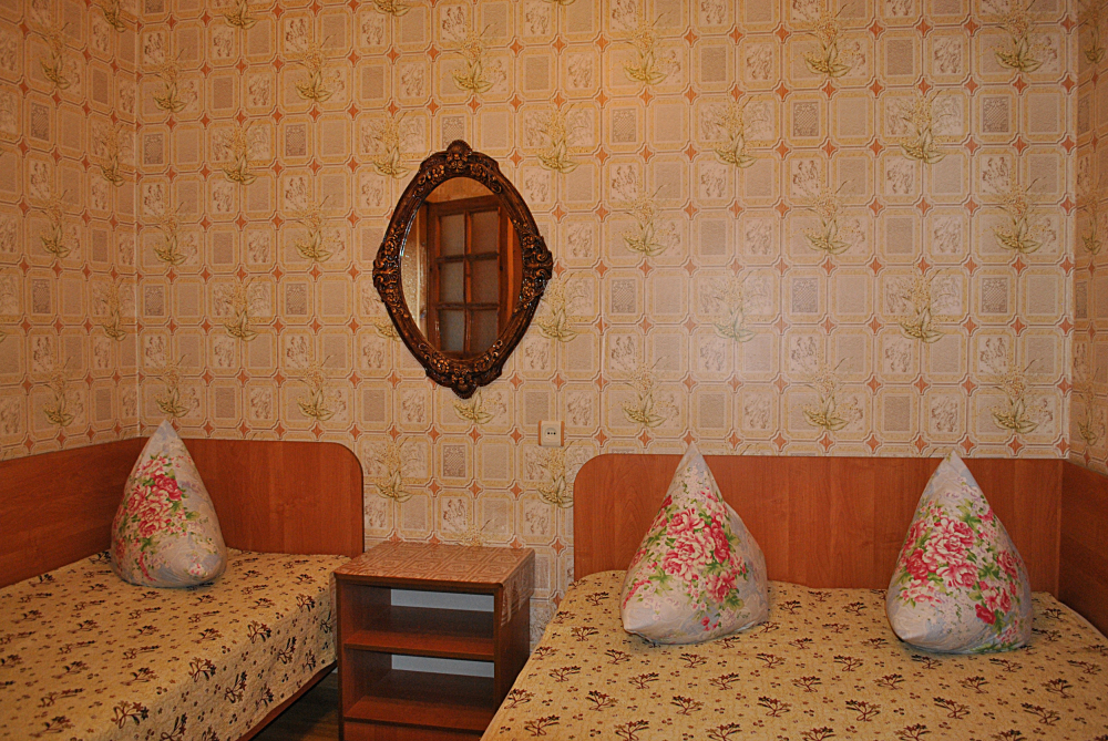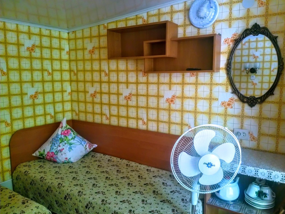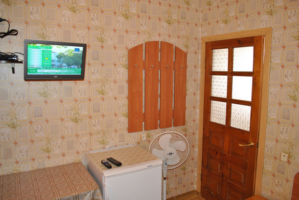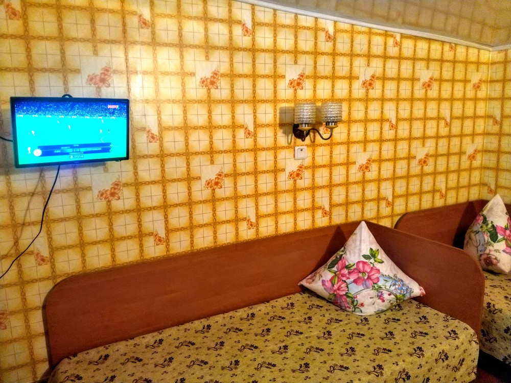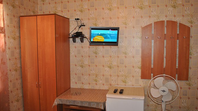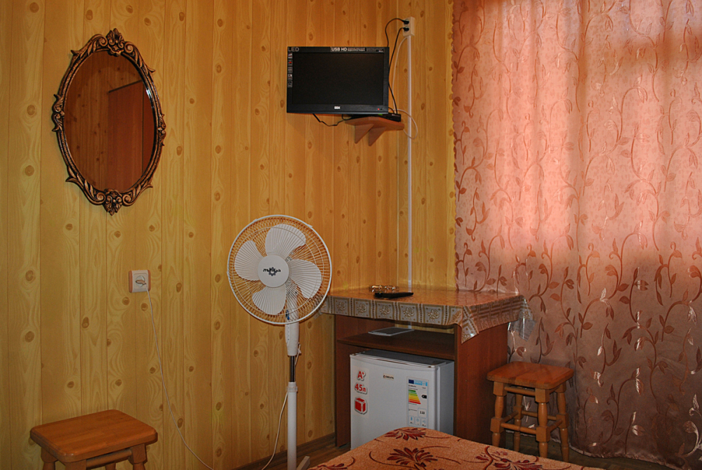 Комната находится на 1-м этаже В комнате есть холодильник, вентилятор, телевизор со спутниковыми каналами, шкаф, три односпальных кровати. Вид во двор