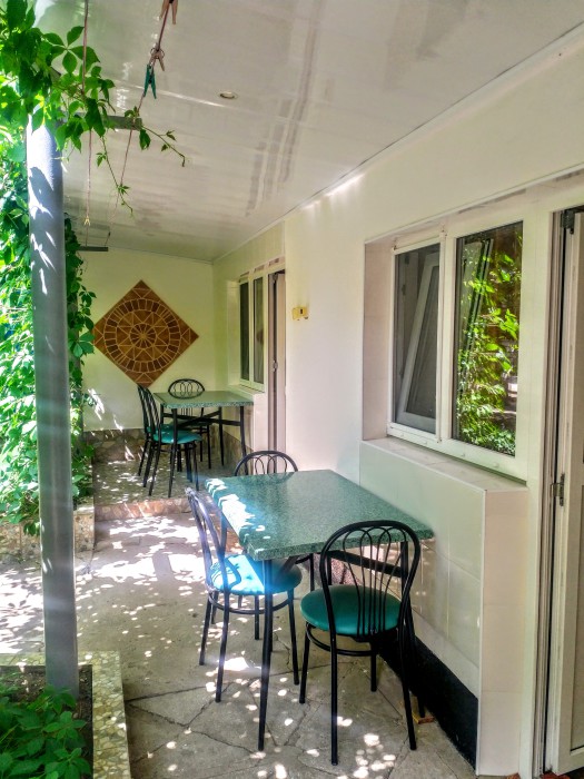Условия проживания: 2-х, 3-х, 4-х, 5-ти местные комнаты. Удобства находятся в шаговой доступности возле комнат и рассчитаны на 3 комнаты каждый. Все души с горячей водой. В каждой комнате кровати односпальные и двуспальные с ортопедическими матрасами, прикроватные тумбочки, стол, шкаф для одежды, телевизор, холодильник, вентилятор. В коридоре на 2-м этаже стоит мощный кондиционер. Во дворе есть две общие кухни для приготовления пищи. Стоимость пользования стиральной машинкой - 200 руб. После 23:00 шуметь запрещено! Велосипед можно взять напрокат. Добро пожаловать!