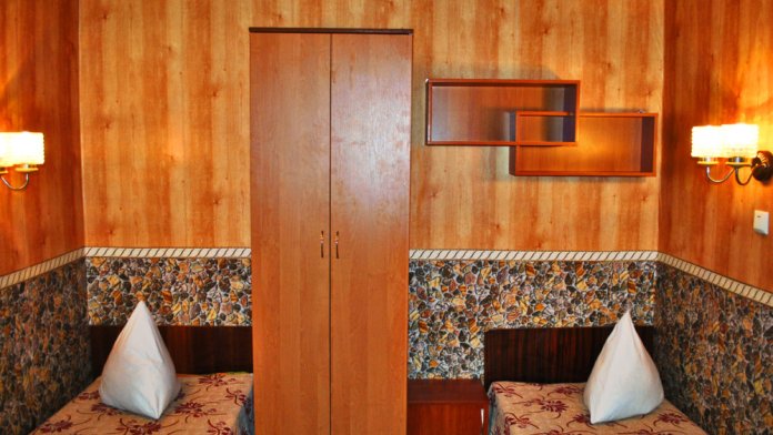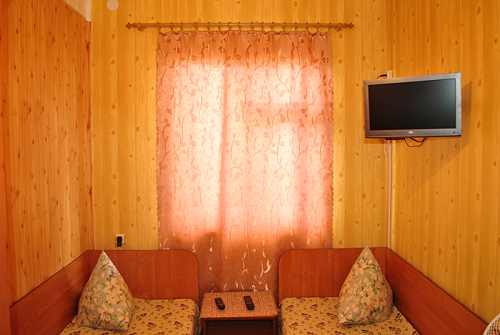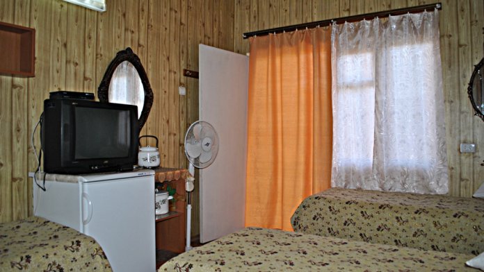 Комната находится на 2-м этаже главного корпуса. В номере есть холодильник, вентилятор, телевизор со спутниковыми каналами, шкаф, одна 2-х спальная кровать. В коридоре находится мощный кондиционер.