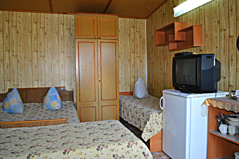 Комната находится на 2-м этаже главного корпуса. В комнате есть холодильник, вентилятор, телевизор со спутниковыми каналами, шкаф, три односпальных кровати. В коридоре находится мощный кондиционер.