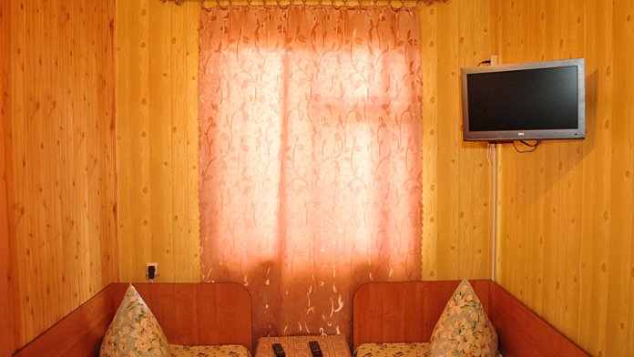 Комната находится на 2-м этаже главного корпуса. В комнате есть холодильник, вентилятор, телевизор со спутниковыми каналами, шкаф, одна 2-х спальная и односпальная кровать. В коридоре находится мощный кондиционер.