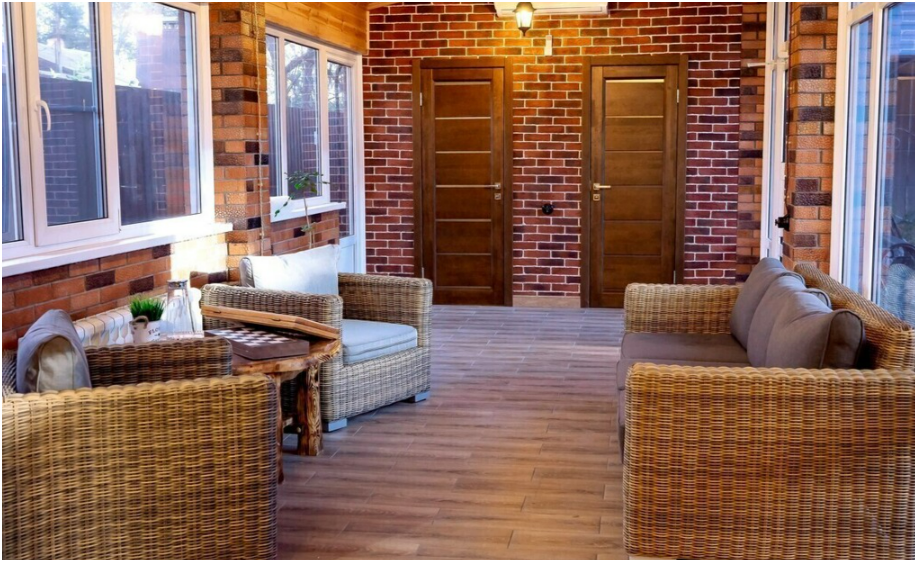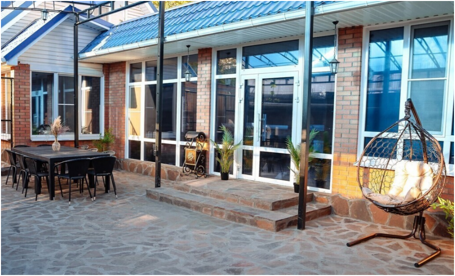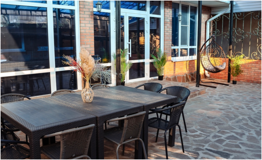 Собственный двор (где можно выйти покурить) оборудован мебелью из ротанга и креслом - качелью.