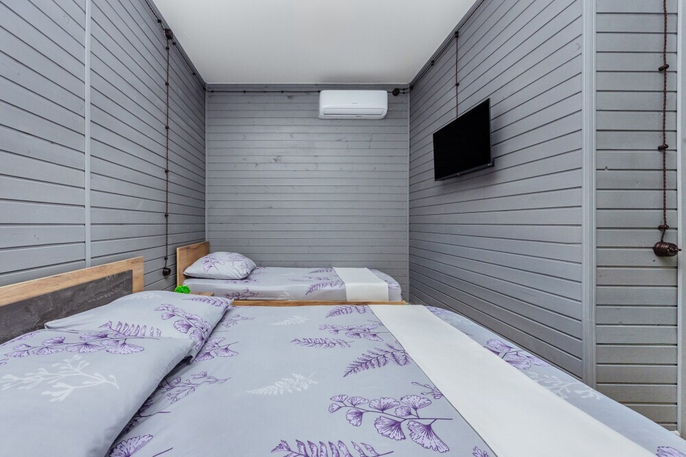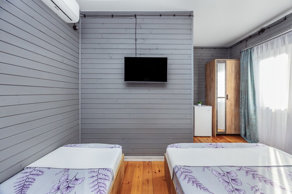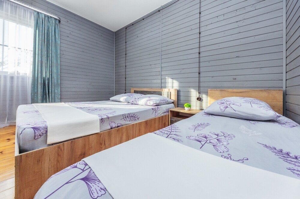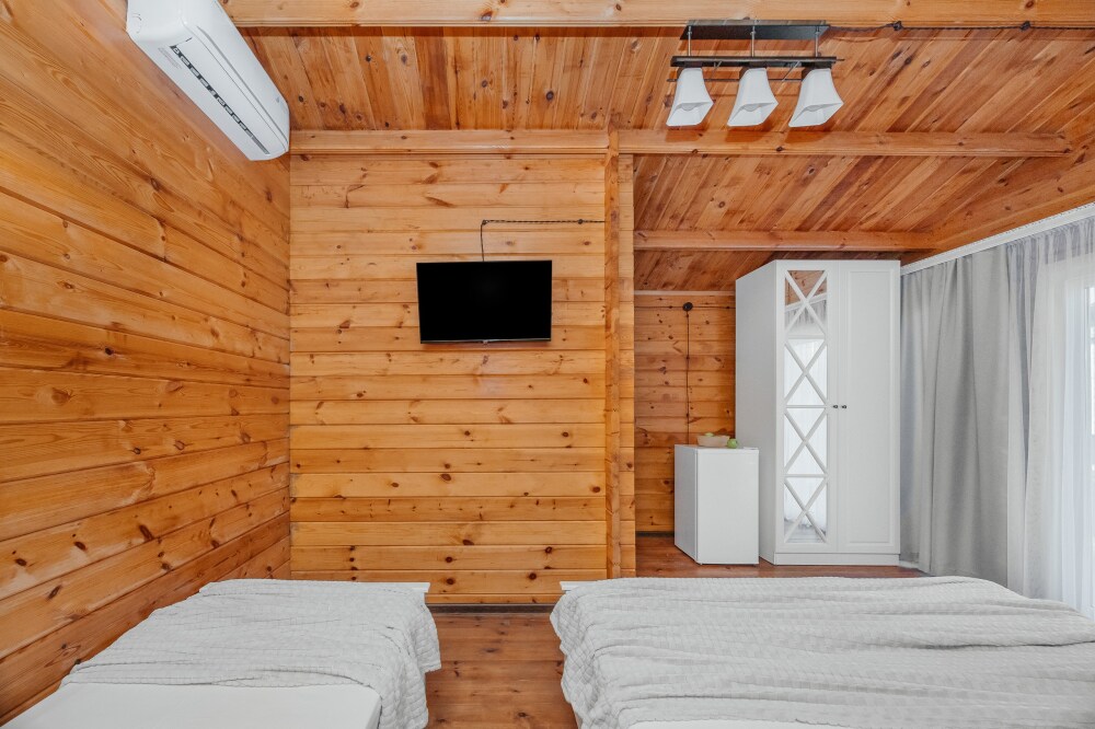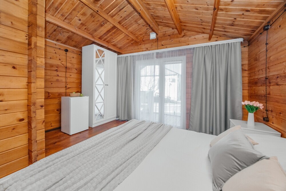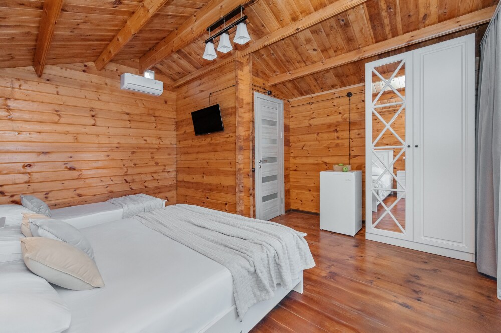У нас есть комфортабельные двухкомнатные коттеджные домики, которые могут разместить до шести гостей, а так же однокомнатные домики (до 4-х гостей) в которых есть все необходимое для комфортного и уютного проживания.