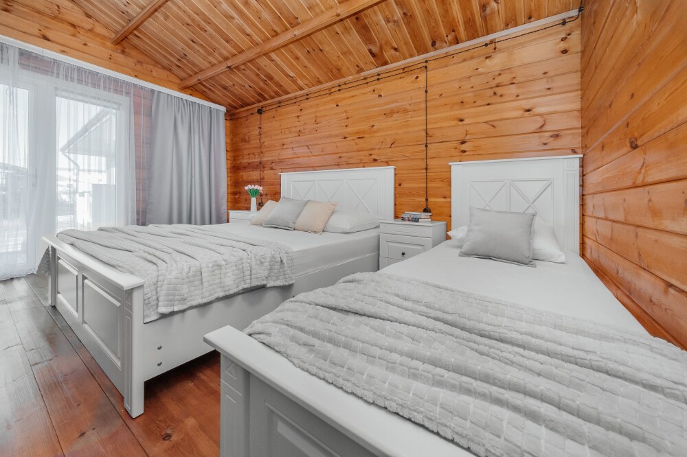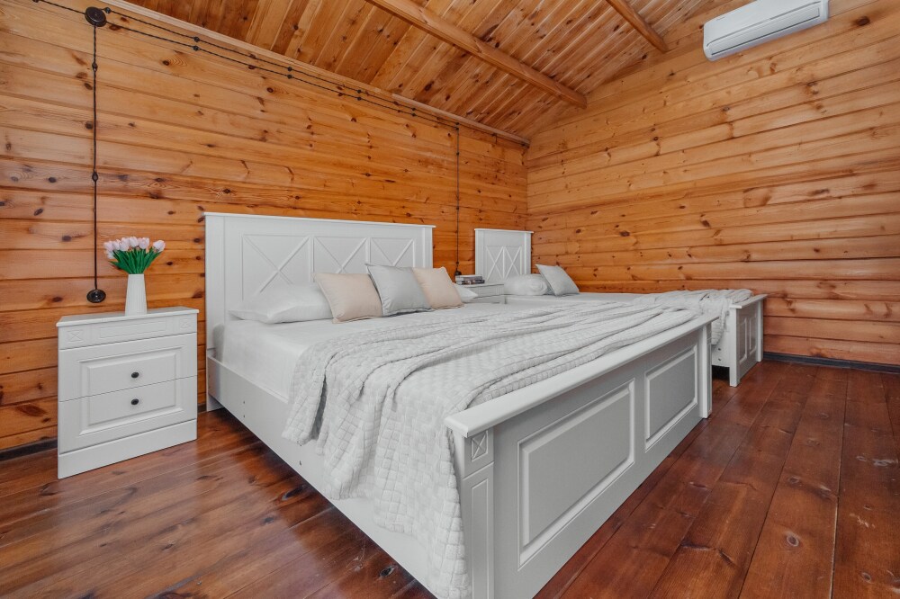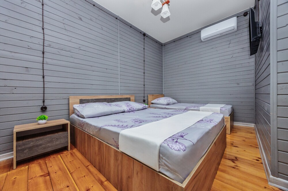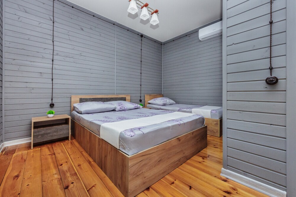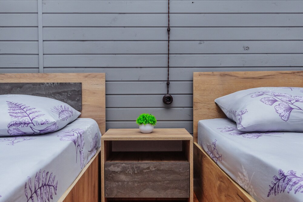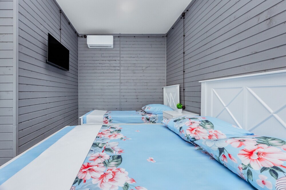 У нас есть комфортабельные двухкомнатные коттеджные домики, которые могут разместить до шести гостей, а так же однокомнатные домики (до 4-х гостей) в которых есть все необходимое для комфортного и уютного проживания.