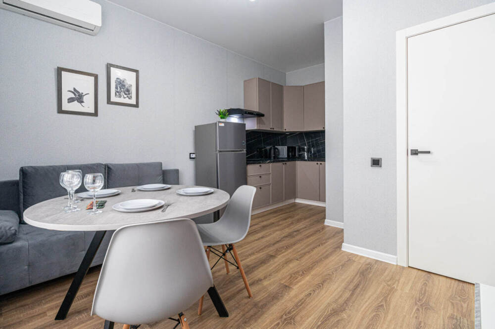 Апартаменты расположены возле удобной транспортной развязки, в радиусе: 10 минут парк «Краснодар», 20 минут центр города, 5 минут КубГУ.