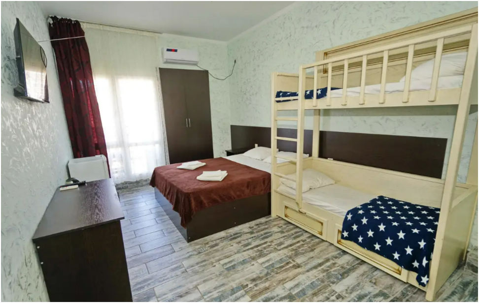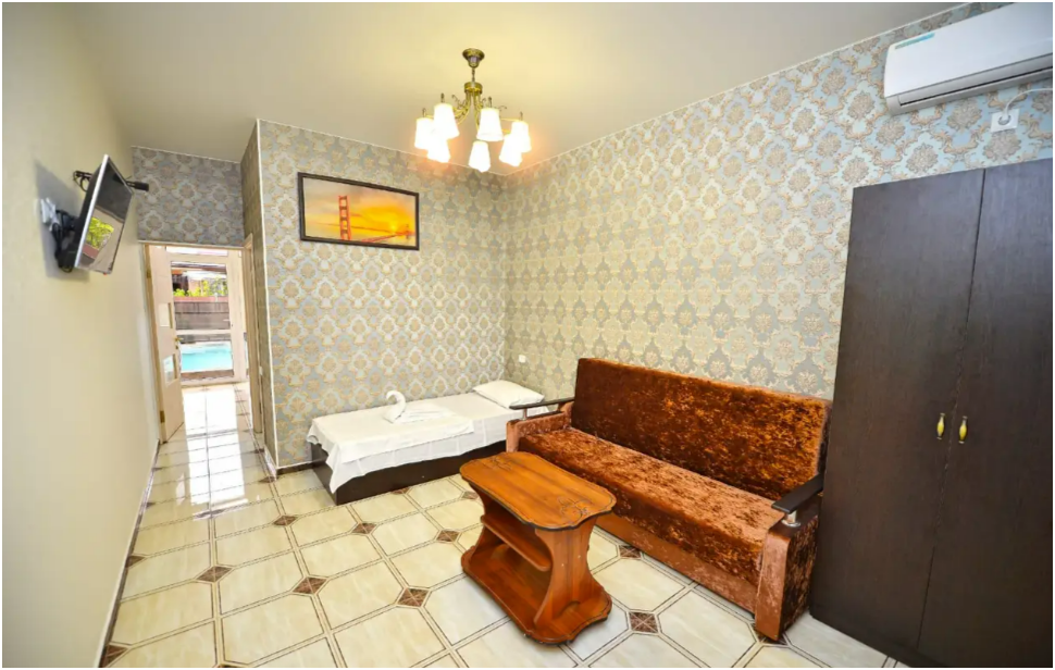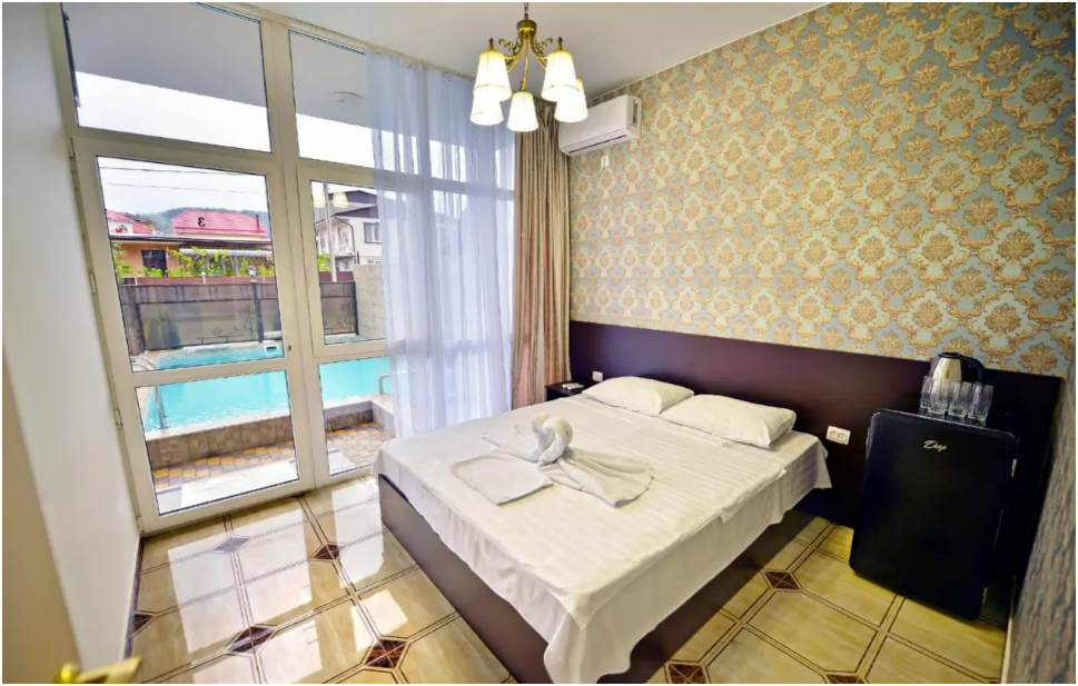 Во дворе Вас ожидает сезонный бассейн с подогревом, шезлонгами и зоной отдыха. Также к Вашим услугам кухня и мангальная зона для самостоятельного приготовления блюд. Номера гостевого дома оформлены в современном стиле, с новым ремонтом и полным набором удобств: балконом, душем и туалетом, сплит-системой, телевизором и Wi-Fi. Всё это обеспечивает комфортное проживание и отдых. Дом имеет три этажа, услуга выбора этажа недоступна.