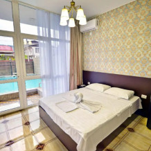 Номер располагается на первом этаже с выходом на бассейн.