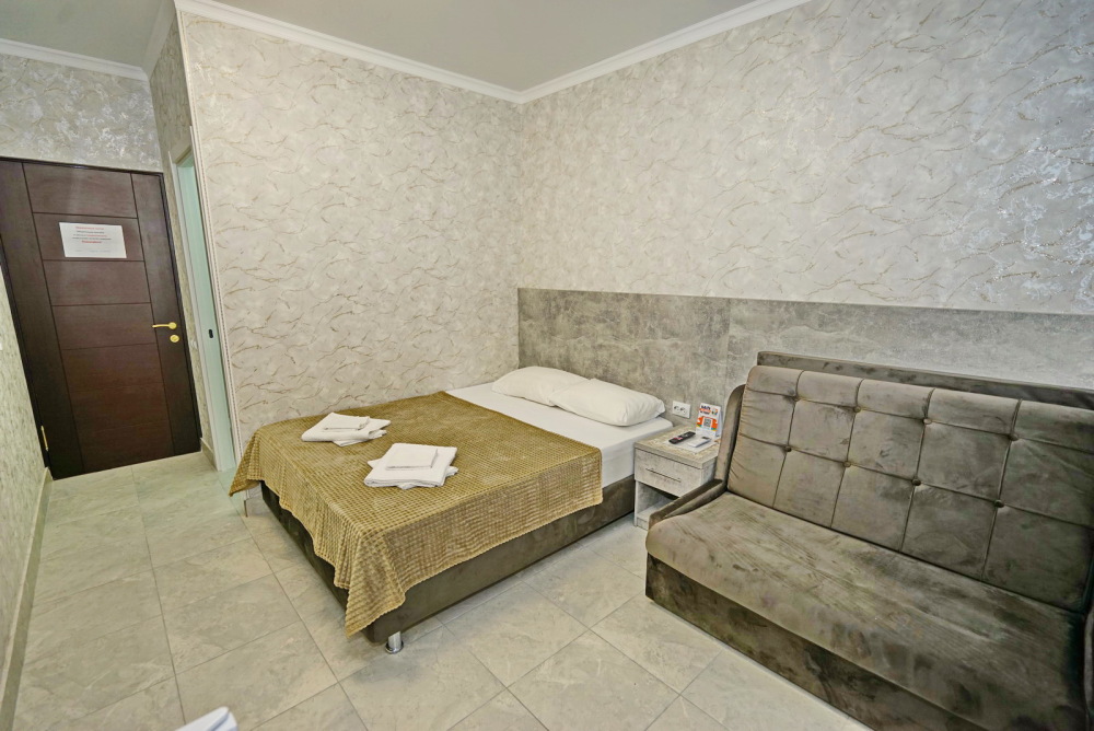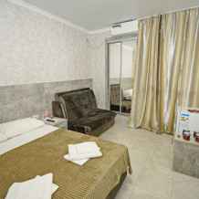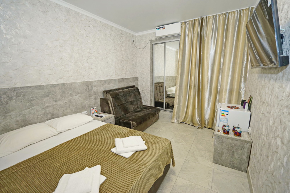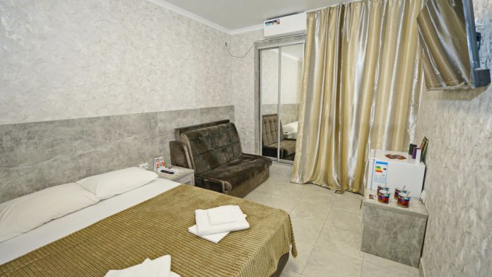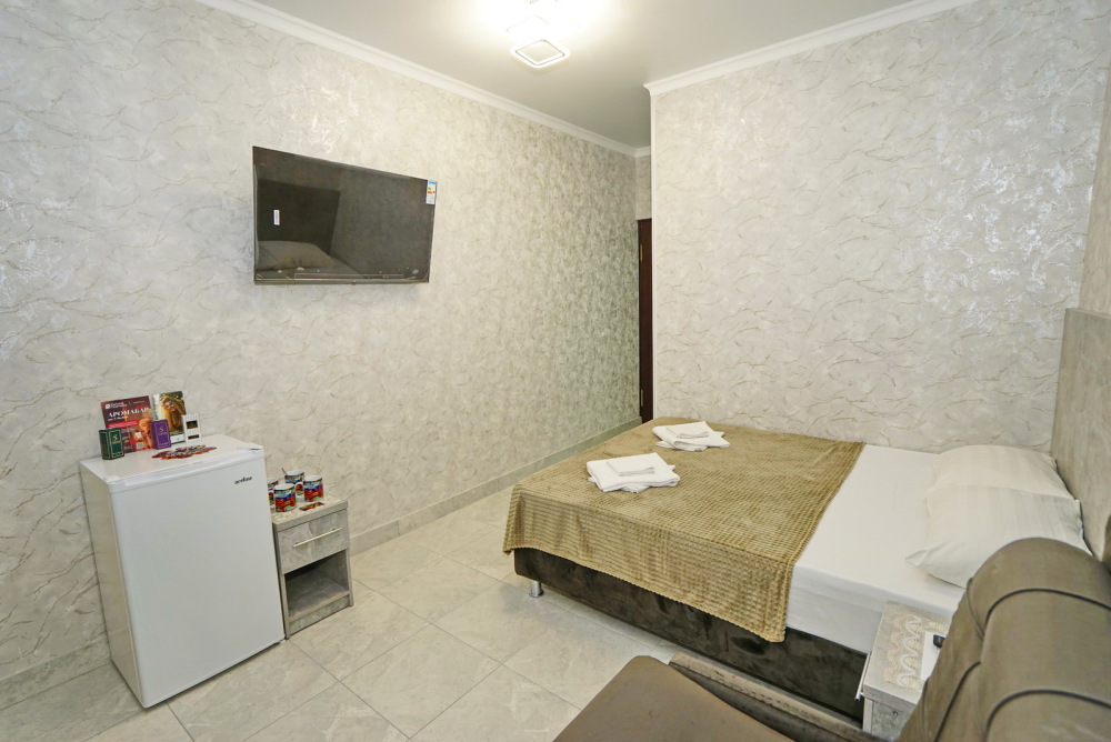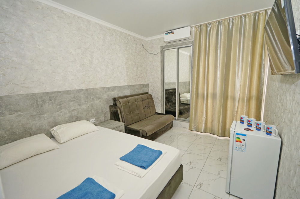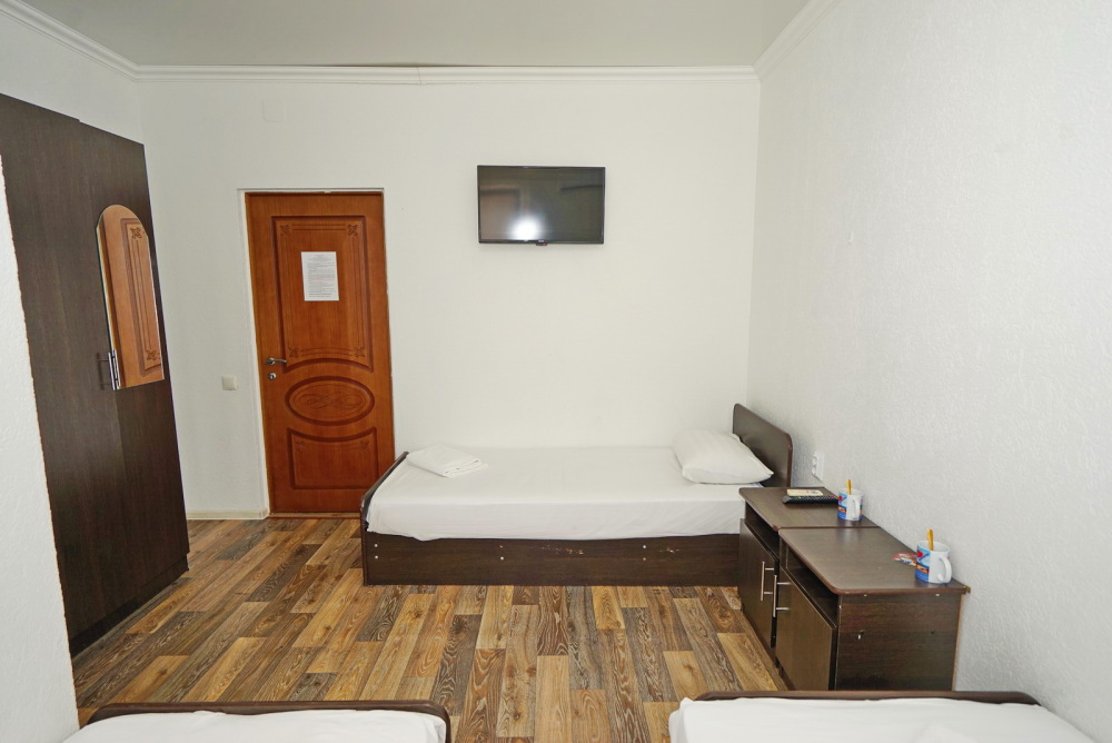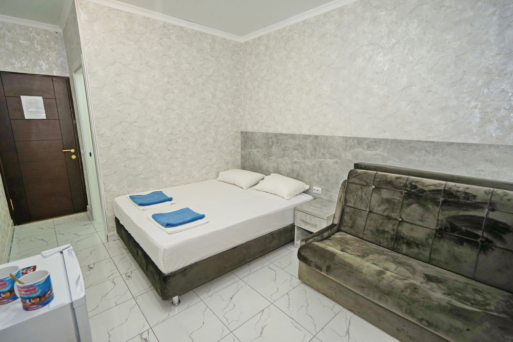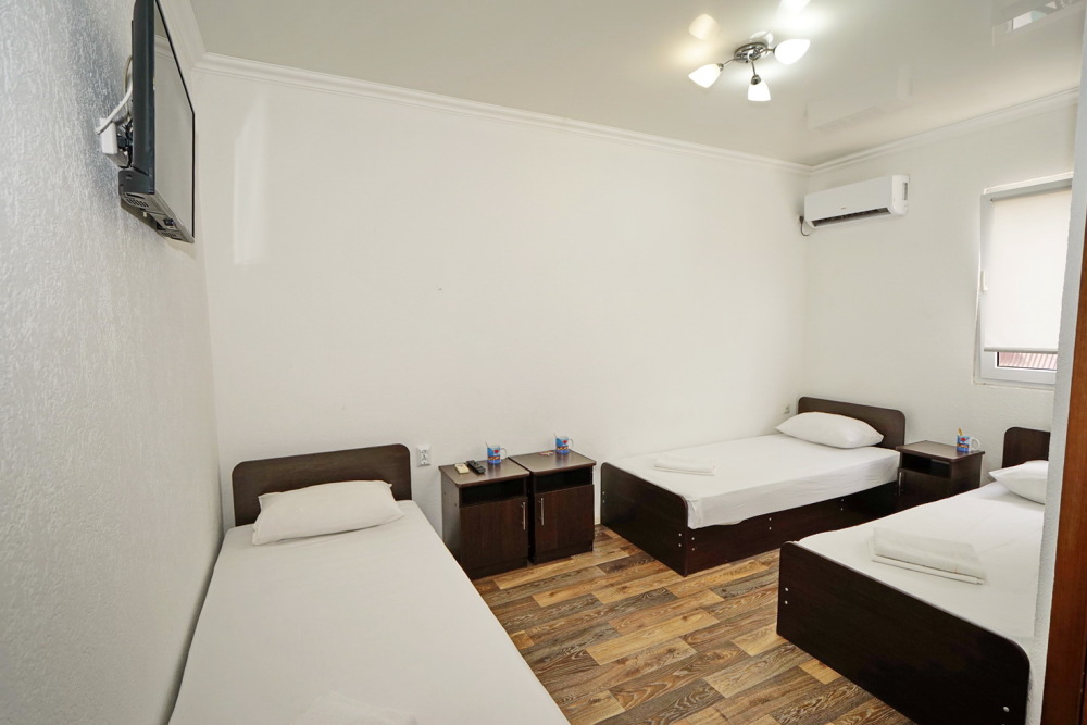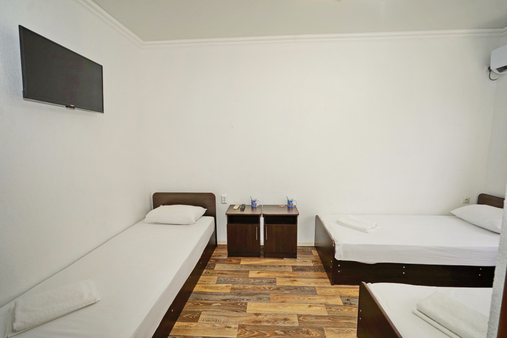 Все номера для проживания располагаются на втором этаже и имеют свои личные балконы. В номерах есть всё необходимое: душ и туалет, холодильник, телевизор, кондиционер и Wi-Fi. Для гостей на личном автомобиле предоставляем парковочное место.