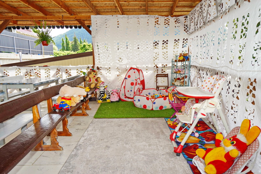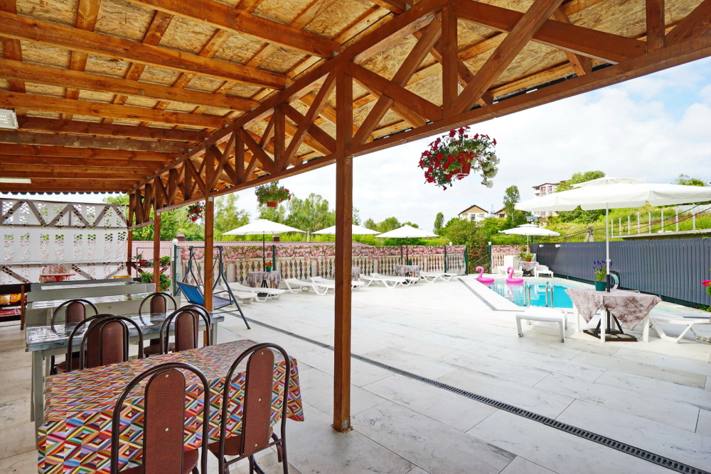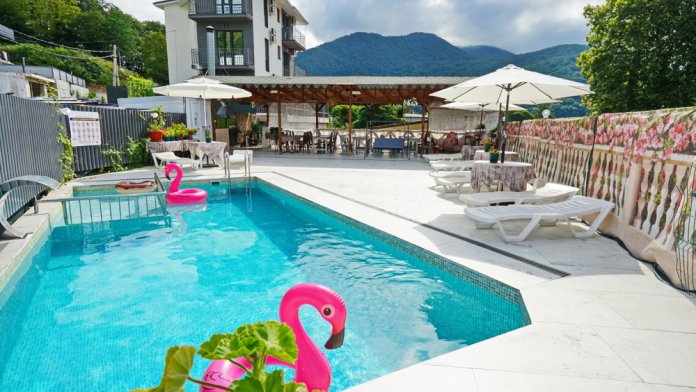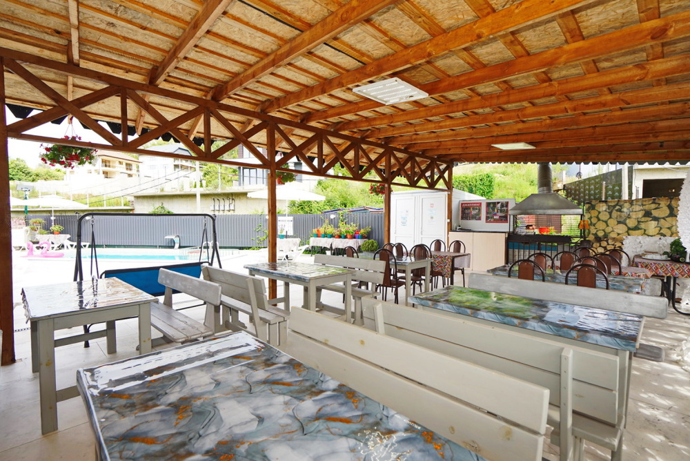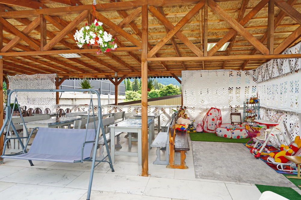 Во дворе дома Вас ждёт бассейн с подогревом для детей и взрослых, откуда открывается великолепный вид на Кавказские горы. Около бассейна: шезлонги для отдыха, детский уголок с развивающими играми, зона барбекю и кухня для самостоятельного приготовления. Даже вдали от дома Вы легко ощутите себя как дома - уютно и тепло.