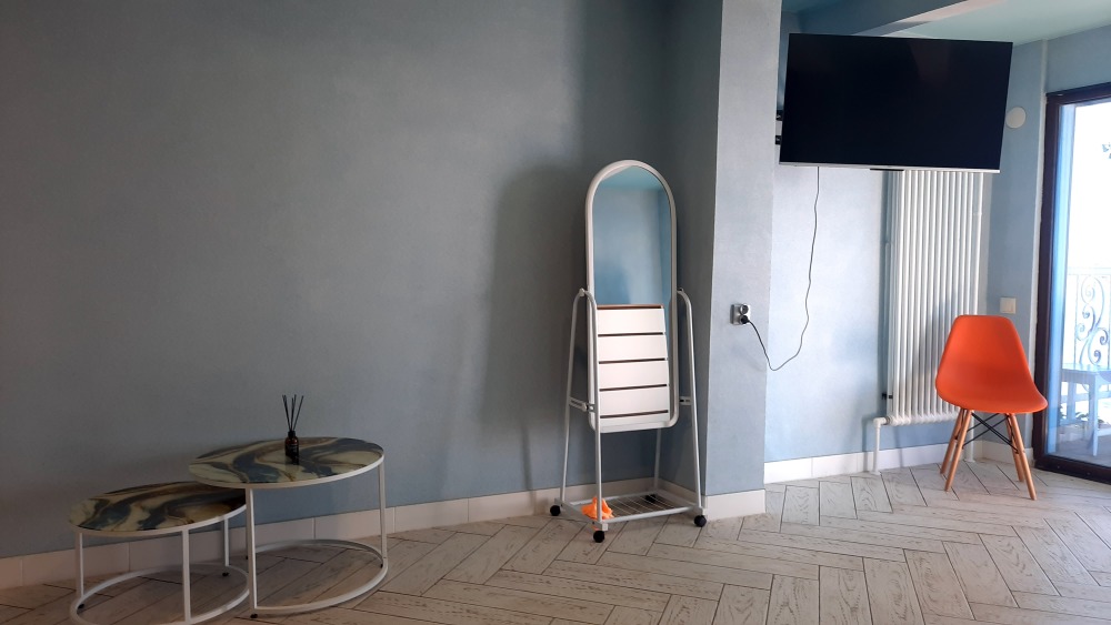 В эллинге 2 спальни, просторная кухня, санузел с душевой и большой балкон с панорамным видом на море. Имеется вся необходимая бытовая техника, мебель, посуда, кондиционер, стиральная машина. Также есть камин-печь, к которому подключены батареи. Им можно не только обогреваться, но и готовить на нем пищу. Здесь можно порыбачить, пожарить шашлык и просто прекрасно отдохнуть.