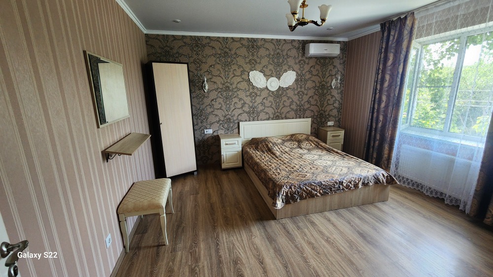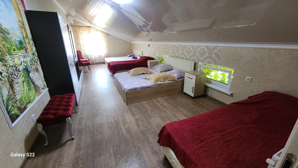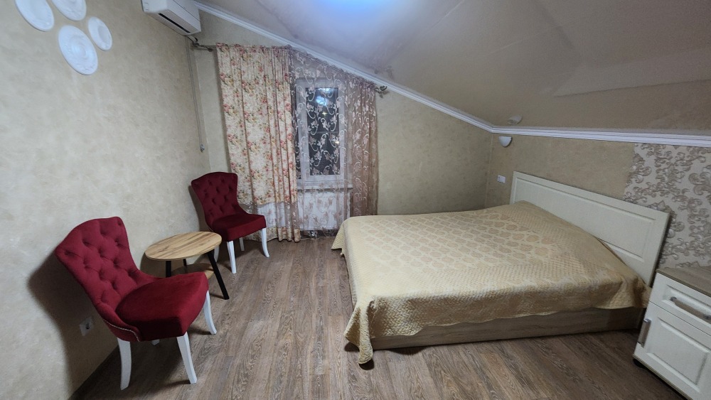 Просторная двухэтажная вилла рассчитанная на 20 гостей. Вилла оборудована всем необходимым для комфортного отдыха и проживания. В доме 8 комнат: 7 спален и гостиная. Спальные места представлены: 7 двуспальными кроватями, 4 односпальными и раскладным двуспальным диваном. Каждая спальня оснащена телевизором, сплит-системой, прикроватными тумбочками и шкафом для хранения личных вещей. Просторная гостиная оборудована: телевизором, музыкальным центром, большим обеденным столом на 12 персон а также мягкой мебелью. Помещение кухни укомплектовано бытовой техникой: холодильник, СВЧ печь, электрический чайник, посудомоечная машина, электрическая плита с духовым шкафом для приготовления еды. Посуда и столовые приборы на 20 персон. Турка для варки кофе. Чай, сахар.