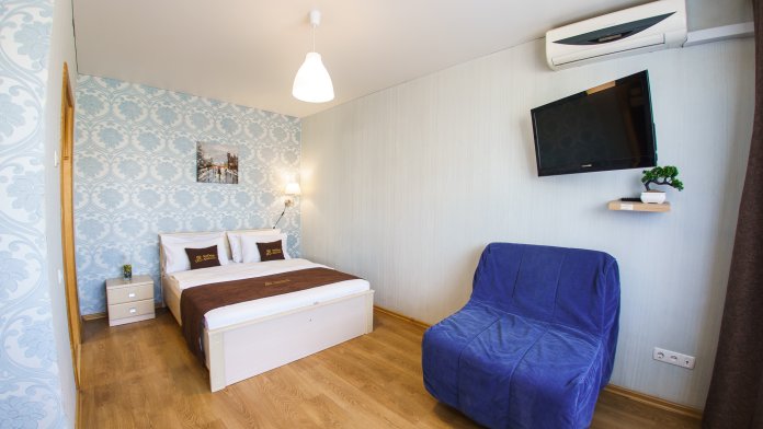 Мы позаботились о том, чтобы в квартире было всё для комфортного отдыха. К Вашим услугам мы предоставляем Wi-Fi и ЖК телевизор с большим пакетом каналов, минимальный набор косметических принадлежностей, всю необходимую бытовую технику, посуду и столовые приборы.