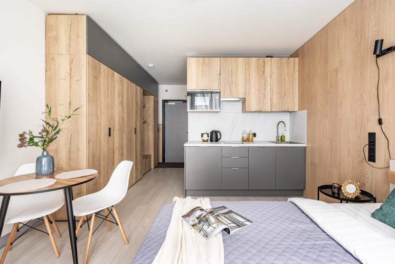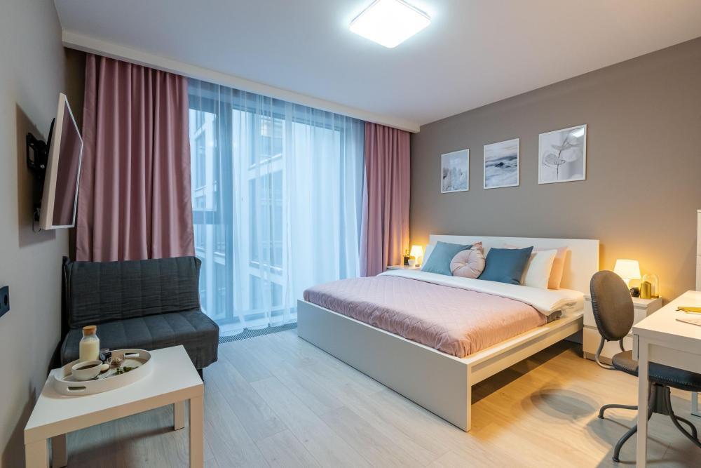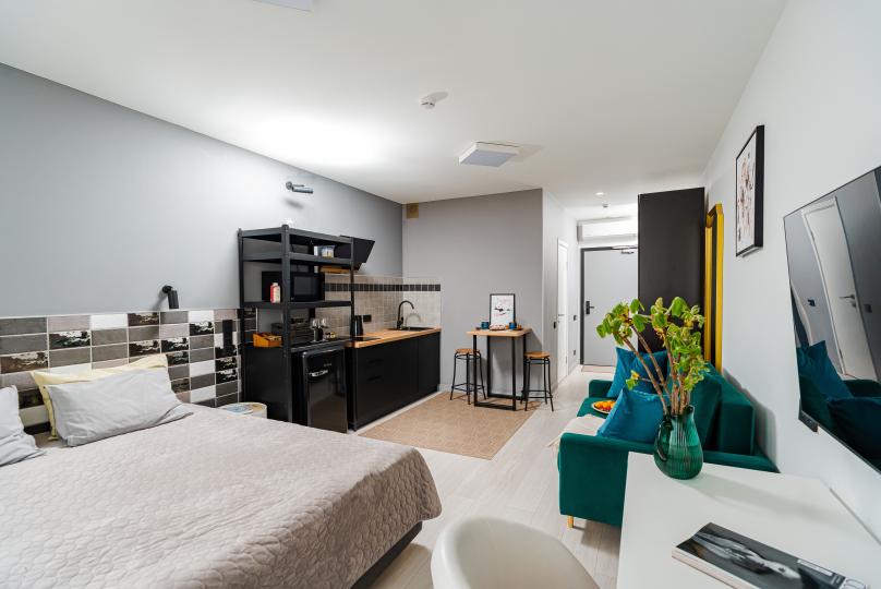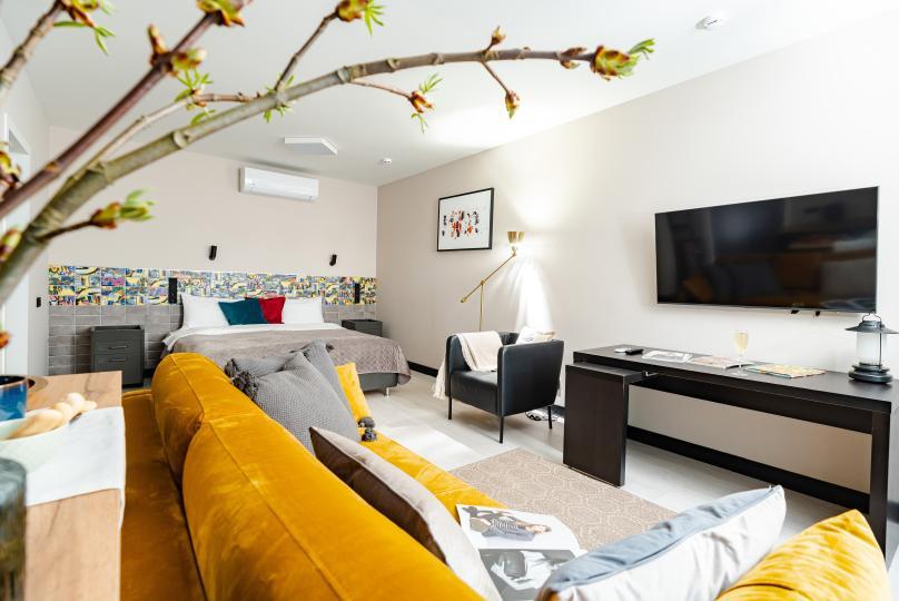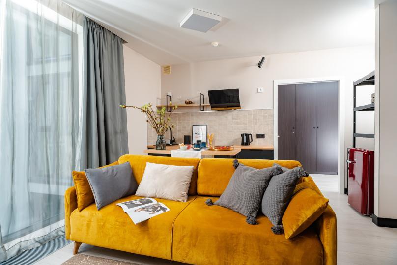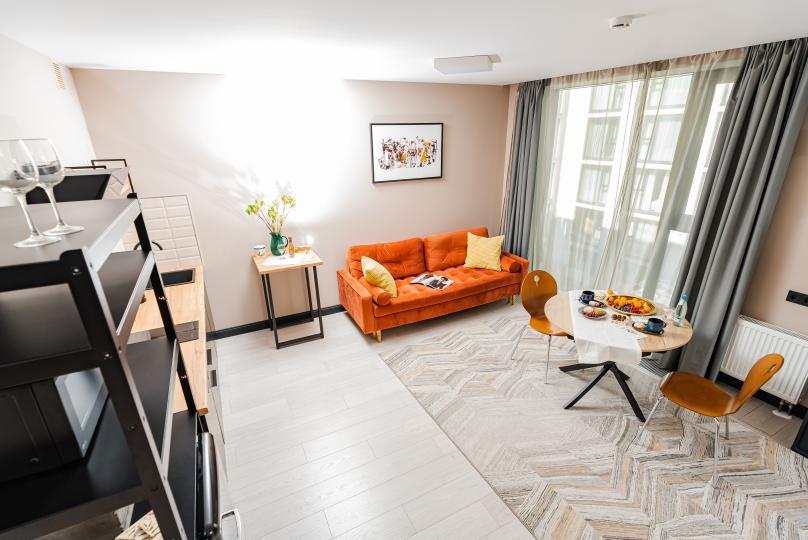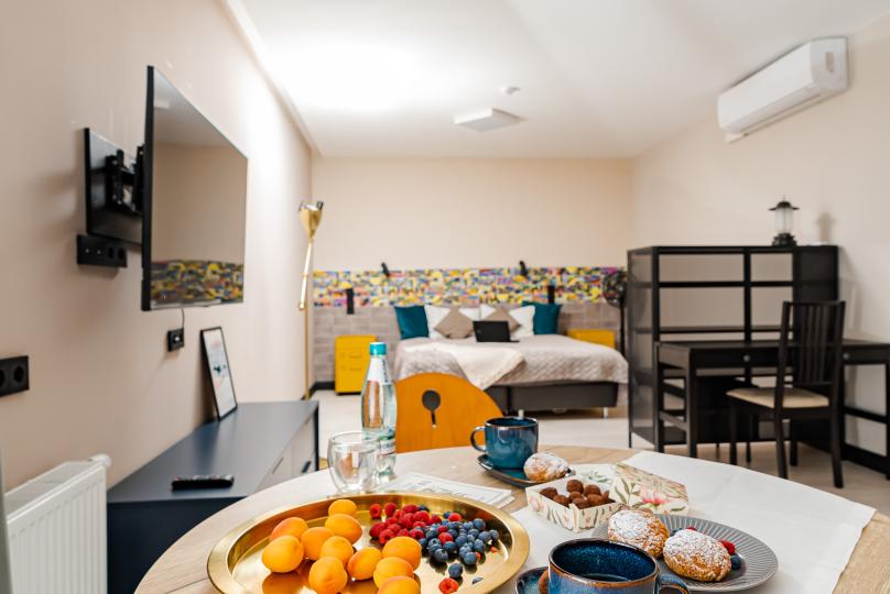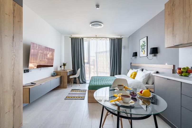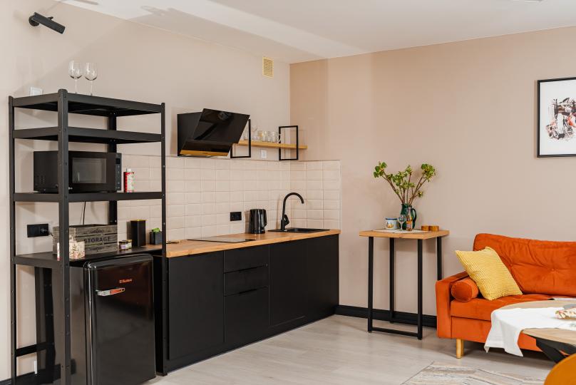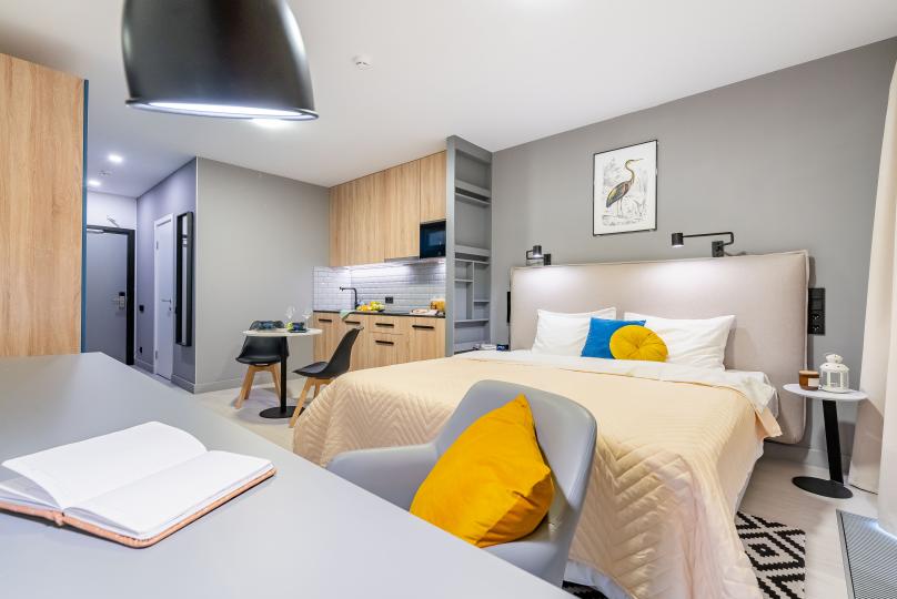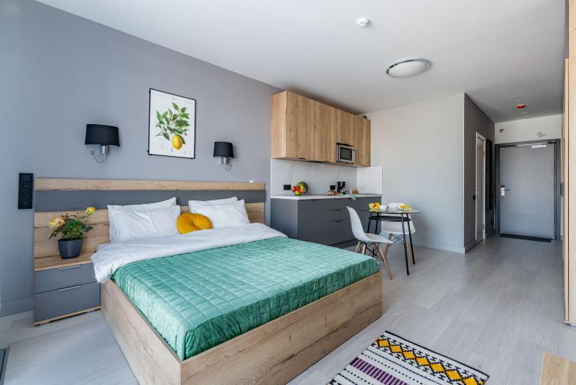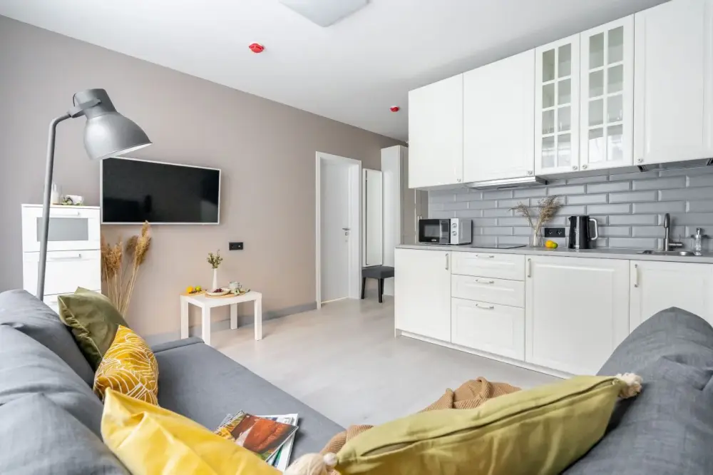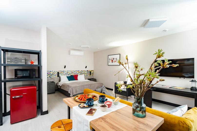Все апартаменты оснащены удобными кроватями с гипоаллергенными подушками и постельным бельем, шкафами для хранения одежды, телевизорами с плоским экраном и спутниковыми каналами. В апартаментах есть собственная ванная комната и мини-кухня со всей необходимой посудой и техникой, включая плиту, холодильник, электрический чайник, микроволновую печь. Также гости могут воспользоваться феном, утюгом и гладильной доской. Гостям предоставляются комплект постельного белья и полотенец, тапочки, гигиенические принадлежности.