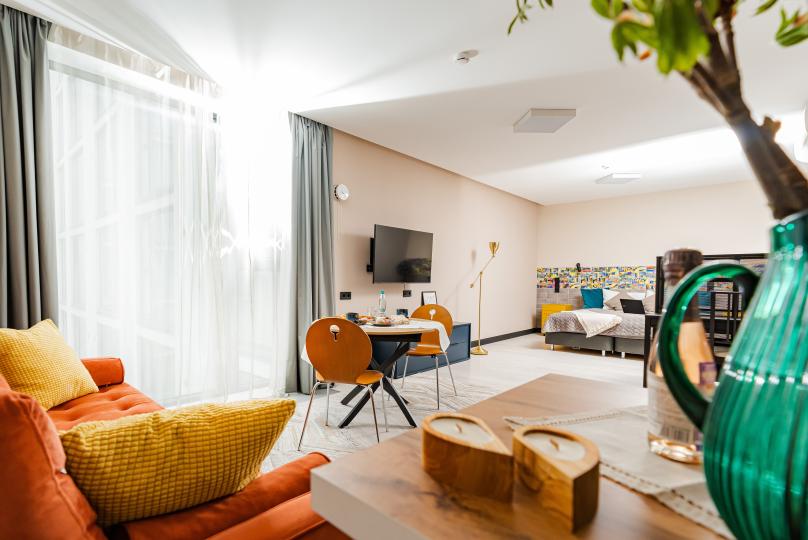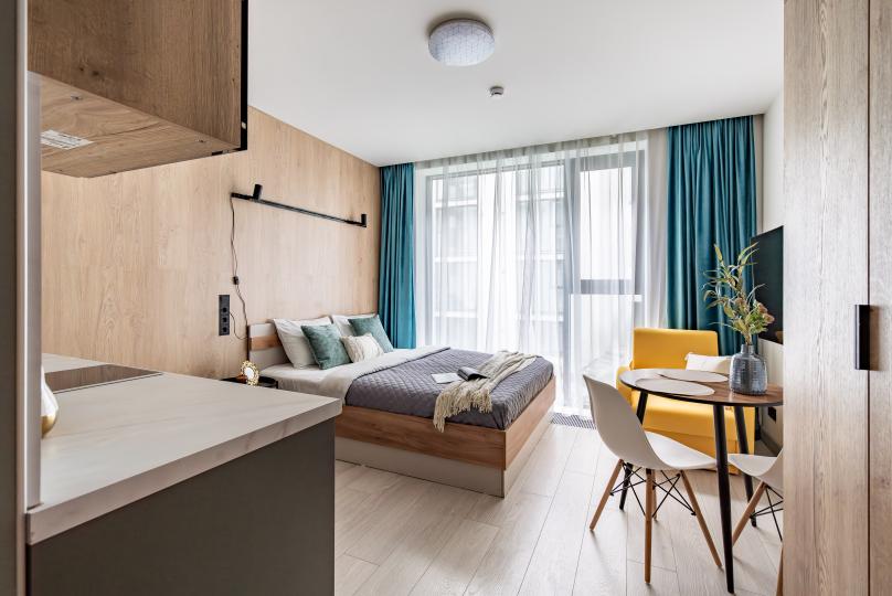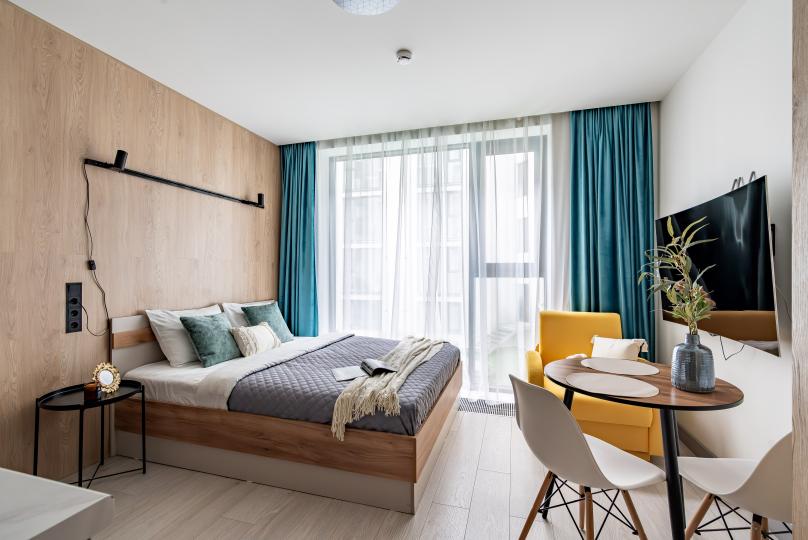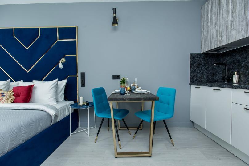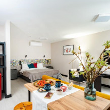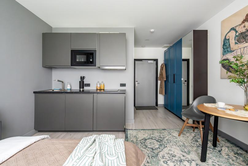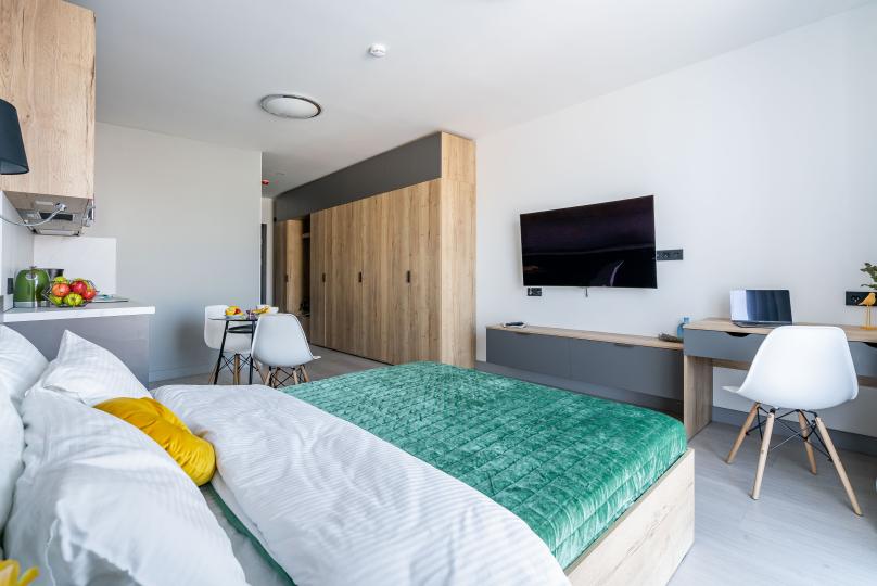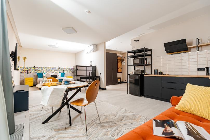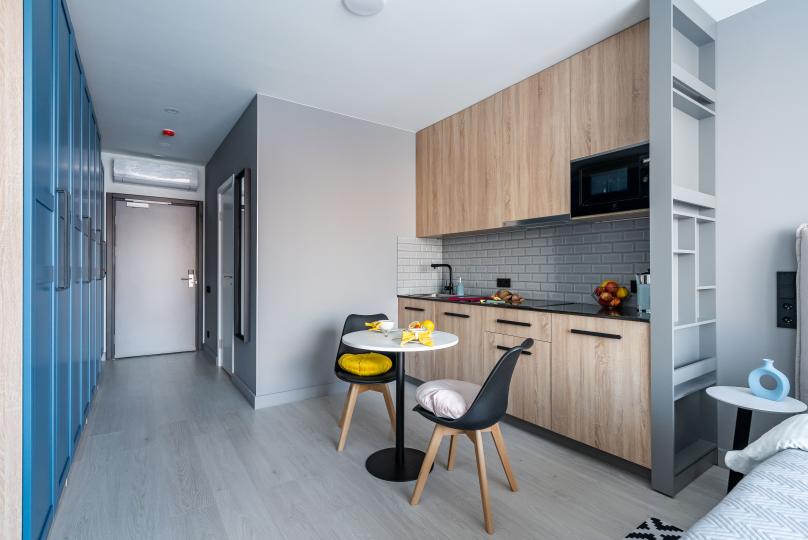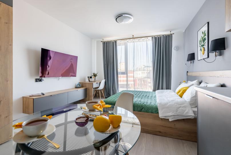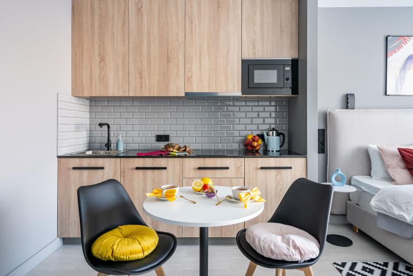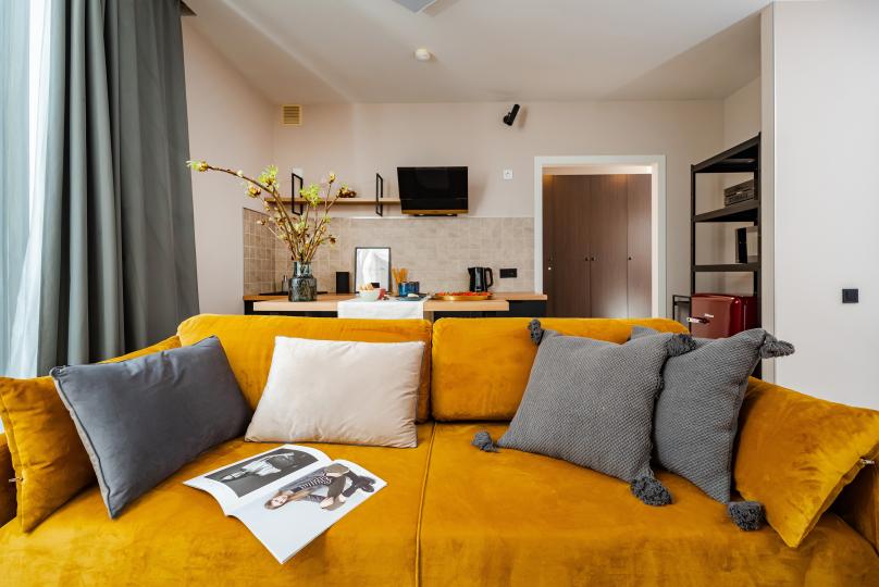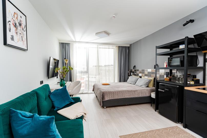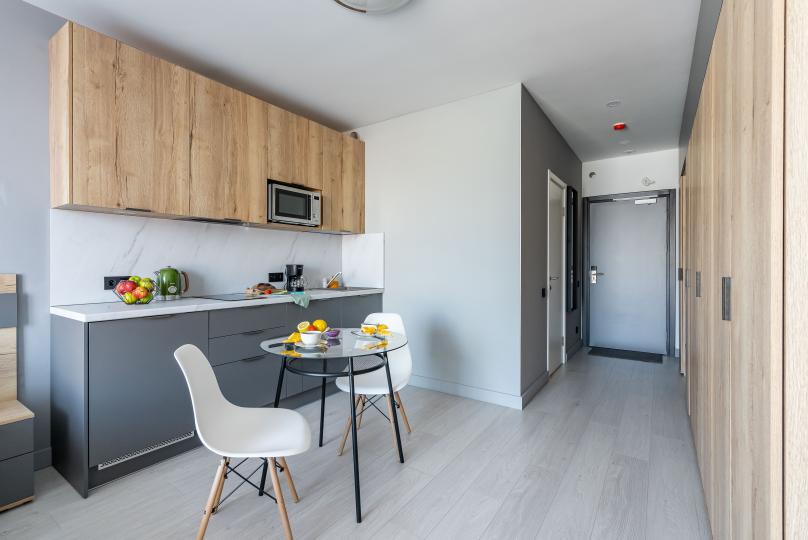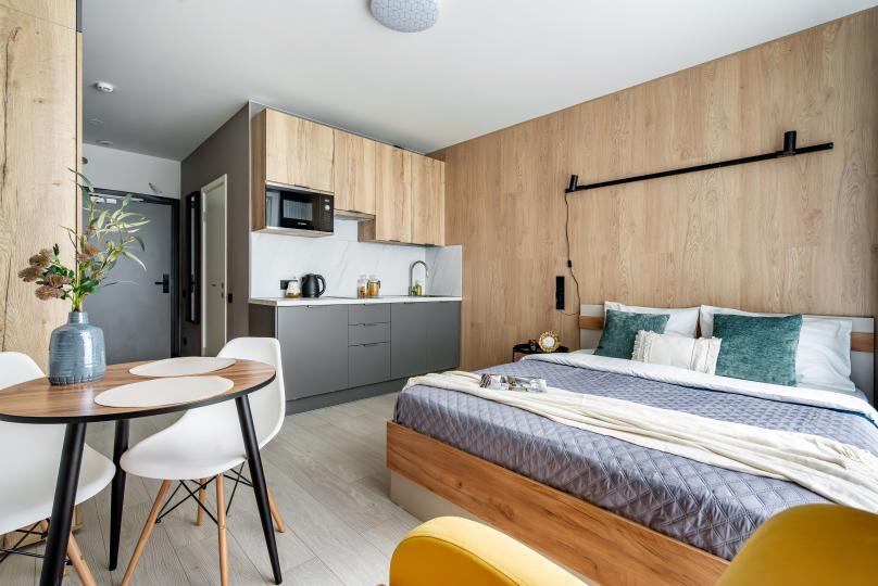 Все апартаменты оснащены удобными кроватями с гипоаллергенными подушками и постельным бельем, шкафами для хранения одежды, телевизорами с плоским экраном и спутниковыми каналами. В апартаментах есть собственная ванная комната и мини-кухня со всей необходимой посудой и техникой, включая плиту, холодильник, электрический чайник, микроволновую печь. Также гости могут воспользоваться феном, утюгом и гладильной доской. Гостям предоставляются комплект постельного белья и полотенец, тапочки, гигиенические принадлежности.