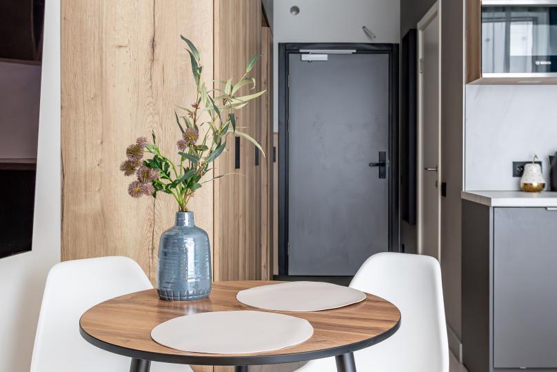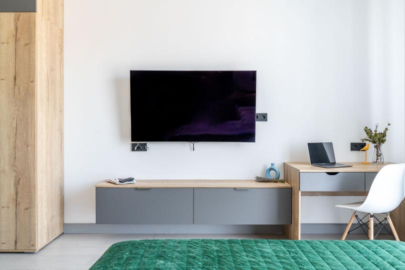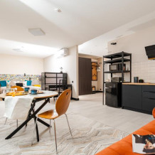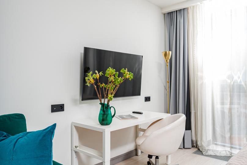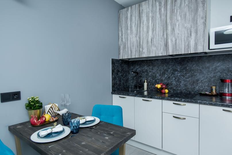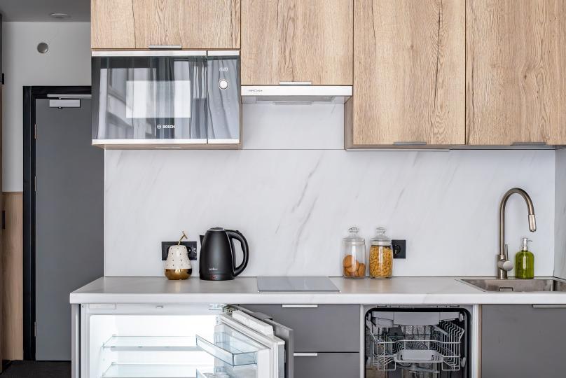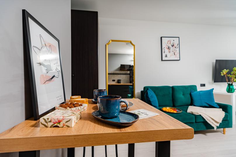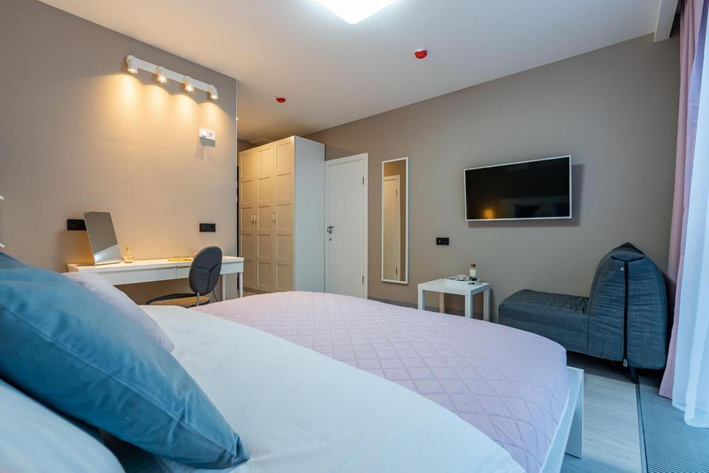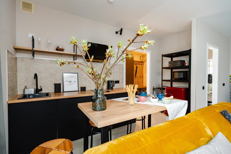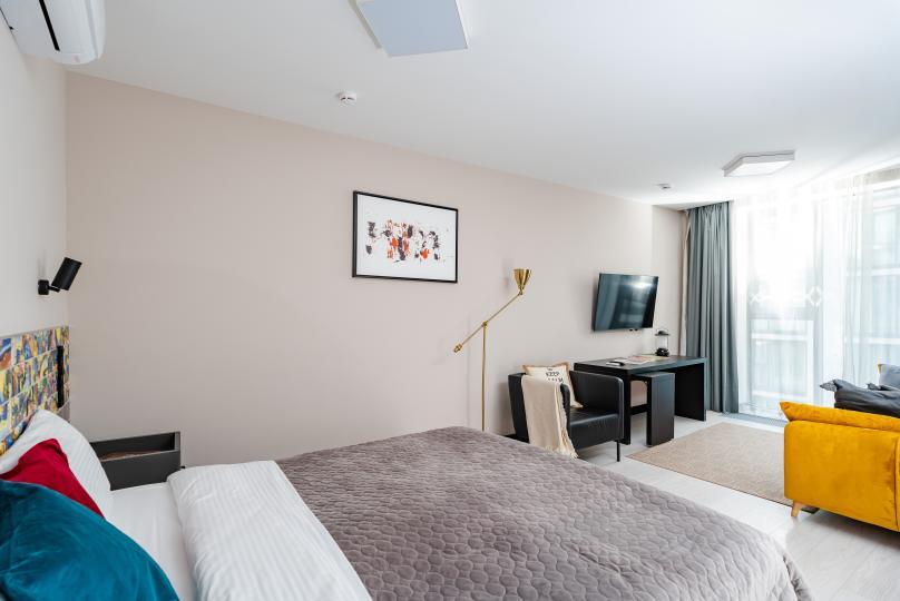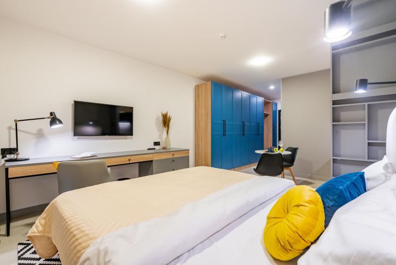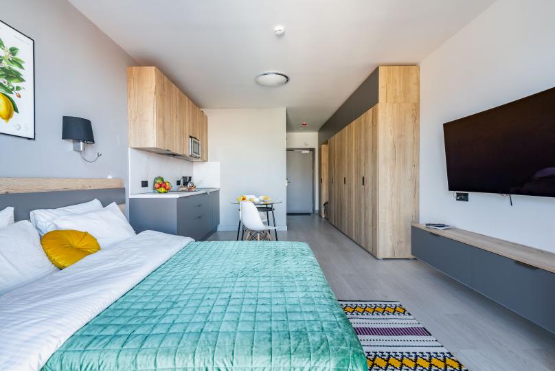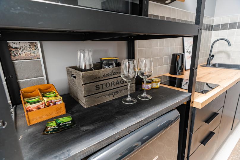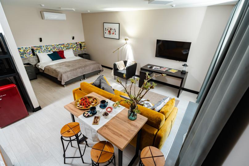 Все апартаменты оснащены удобными кроватями с гипоаллергенными подушками и постельным бельем, шкафами для хранения одежды, телевизорами с плоским экраном и спутниковыми каналами. В апартаментах есть собственная ванная комната и мини-кухня со всей необходимой посудой и техникой, включая плиту, холодильник, электрический чайник, микроволновую печь. Также гости могут воспользоваться феном, утюгом и гладильной доской. Гостям предоставляются комплект постельного белья и полотенец, тапочки, гигиенические принадлежности.