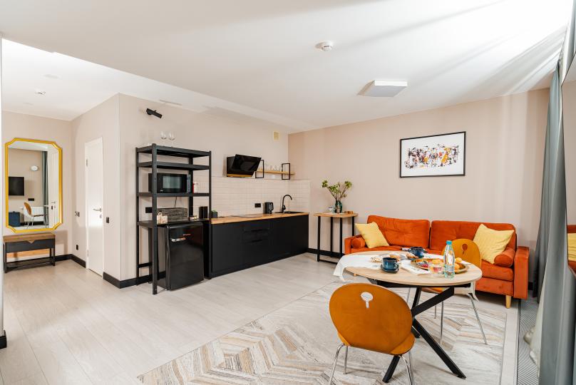 В апарт-отеле есть небольшое кафе. Гости апарт-отеля могут воспользоваться платной подземной парковкой, а также парикмахерской. Для гостей, путешествующих с детьми, апарт-отель предлагает настольные игры. В апарт-отеле допускается размещение с питомцами за дополнительную плату. На всей территории апарт-отеля работает бесплатный Wi-Fi.