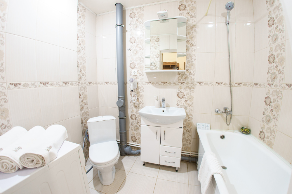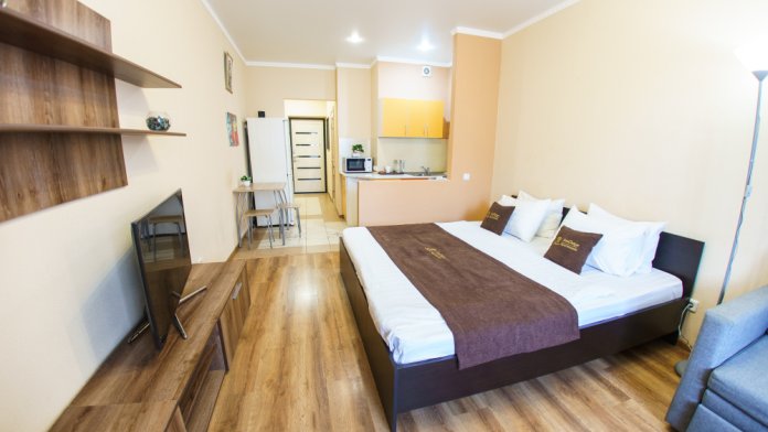 Мы позаботились о том, чтобы в квартире было всё для комфортного отдыха. К Вашим услугам мы предоставляем Wi-Fi и ЖК телевизор с большим пакетом каналов, минимальный набор косметических принадлежностей, всю необходимую бытовую технику, посуду и столовые приборы.