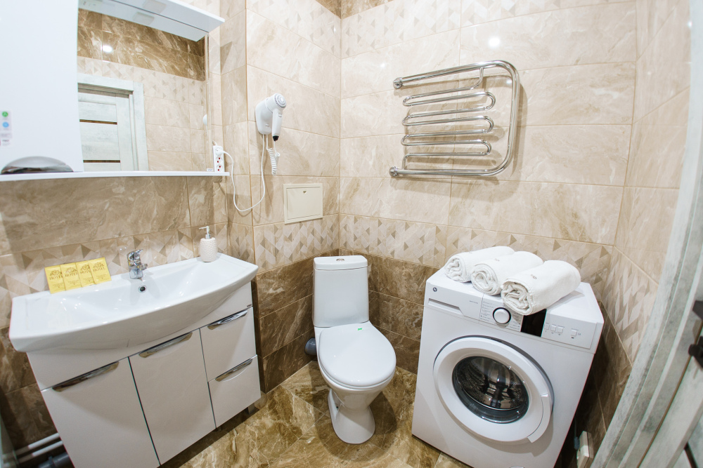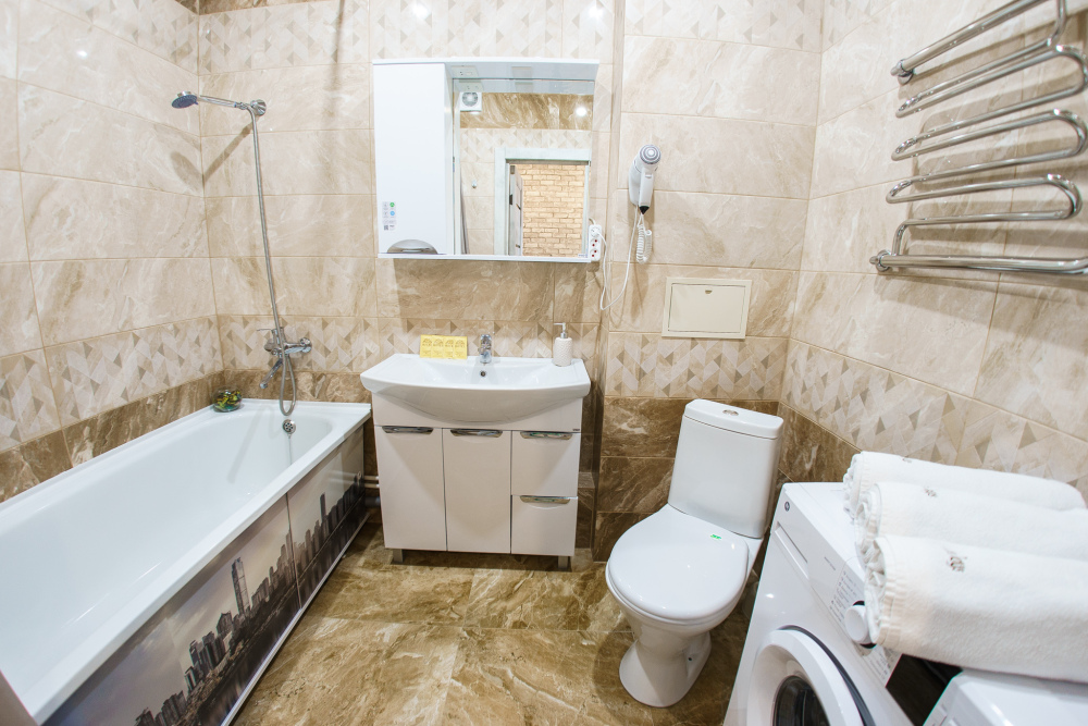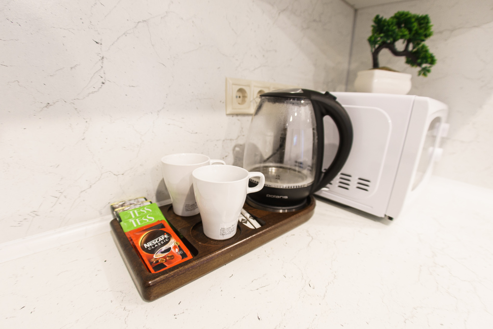 Мы позаботились о том, чтобы в квартире было всё для комфортного отдыха. К Вашим услугам мы предоставляем Wi-Fi и ЖК телевизор с большим пакетом каналов, минимальный набор косметических принадлежностей, всю необходимую бытовую технику, посуду и столовые приборы.