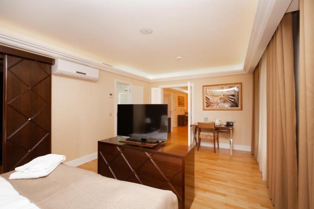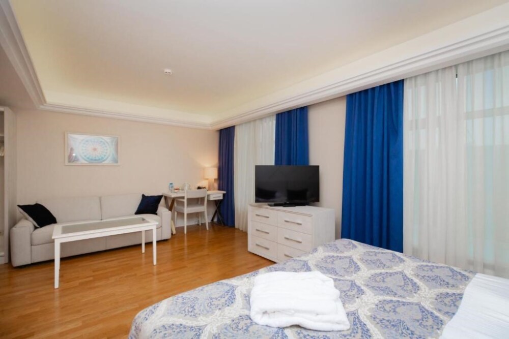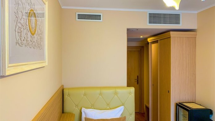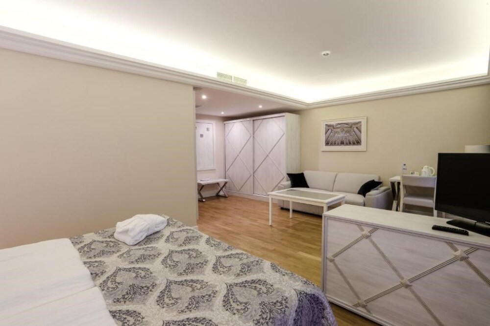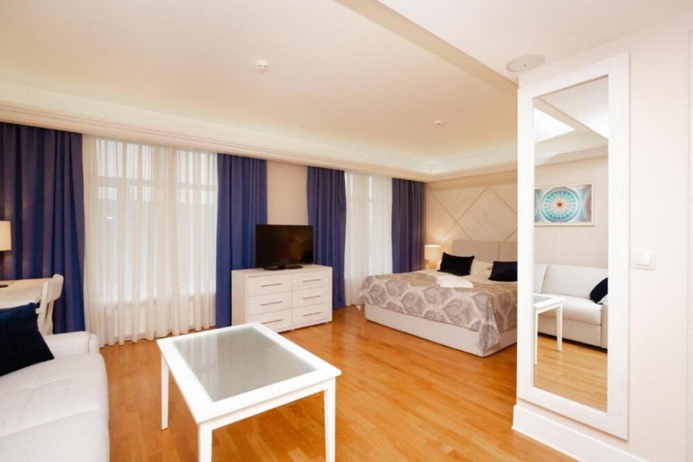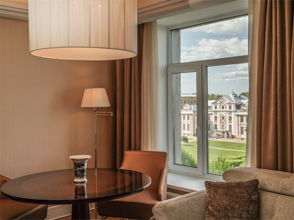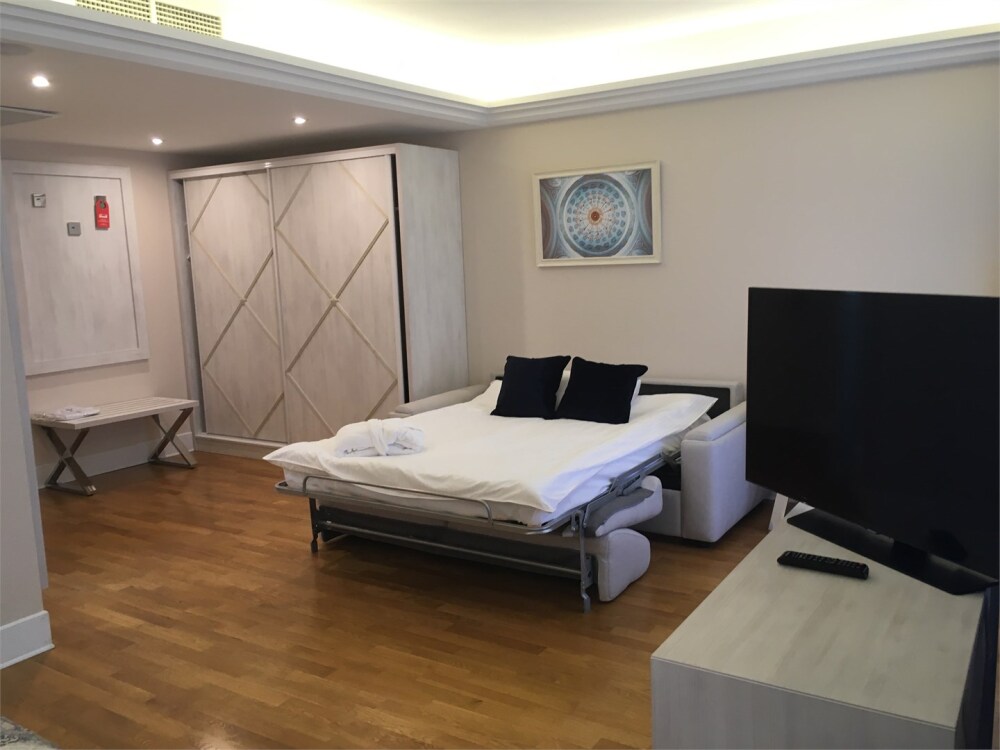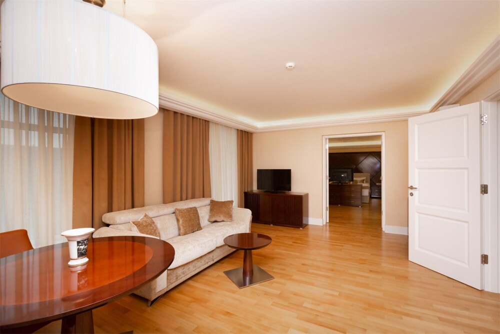 Просторный номер с отдельной гостиной зоной площадью 34 кв. м. идеально подходит для семейного размещения.